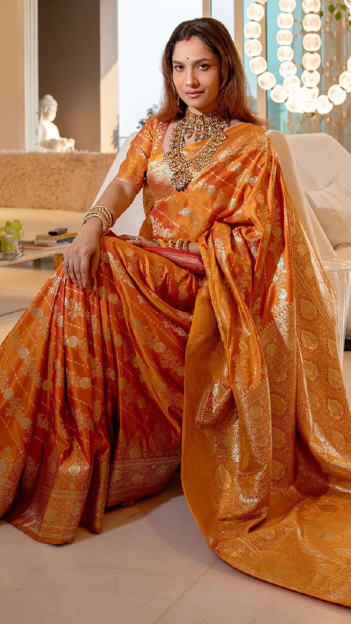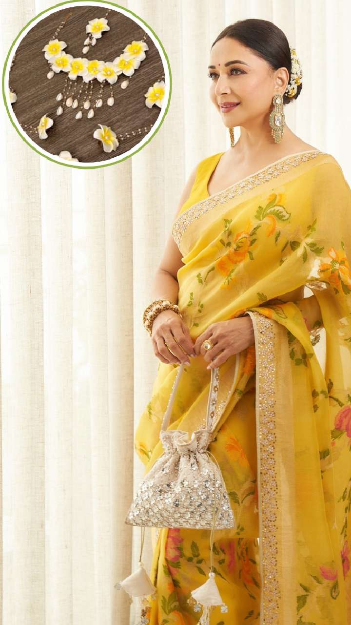 एक्ट्रेस की साड़ी को आप इस बसंत पंचमी पर गॉर्जियस लुक लेने के लिए पहन सकती हैं। साथ ही, हेवी ज्वेलरी और डार्क मेकअप खूबसूरत लुक देगा।