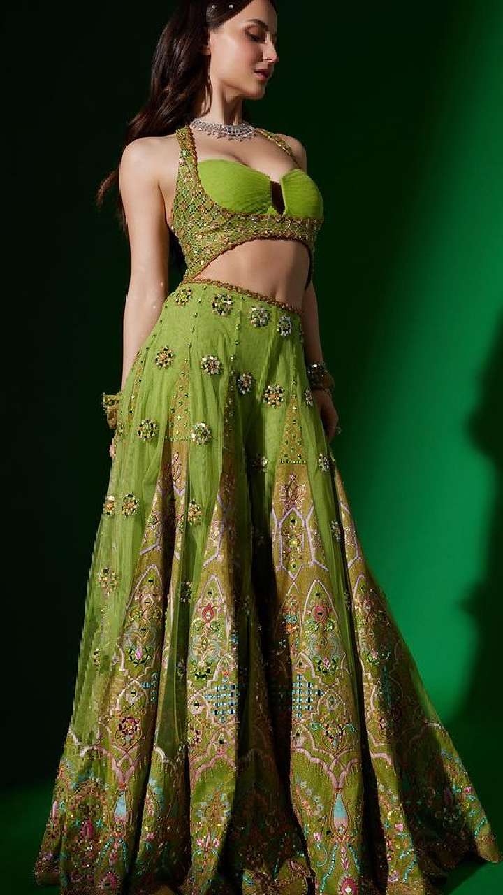 एली का हर इस ग्रीन लहंगे को आप किसी भी वेडिंग फंक्शन में ट्राय कर सकती हैं।