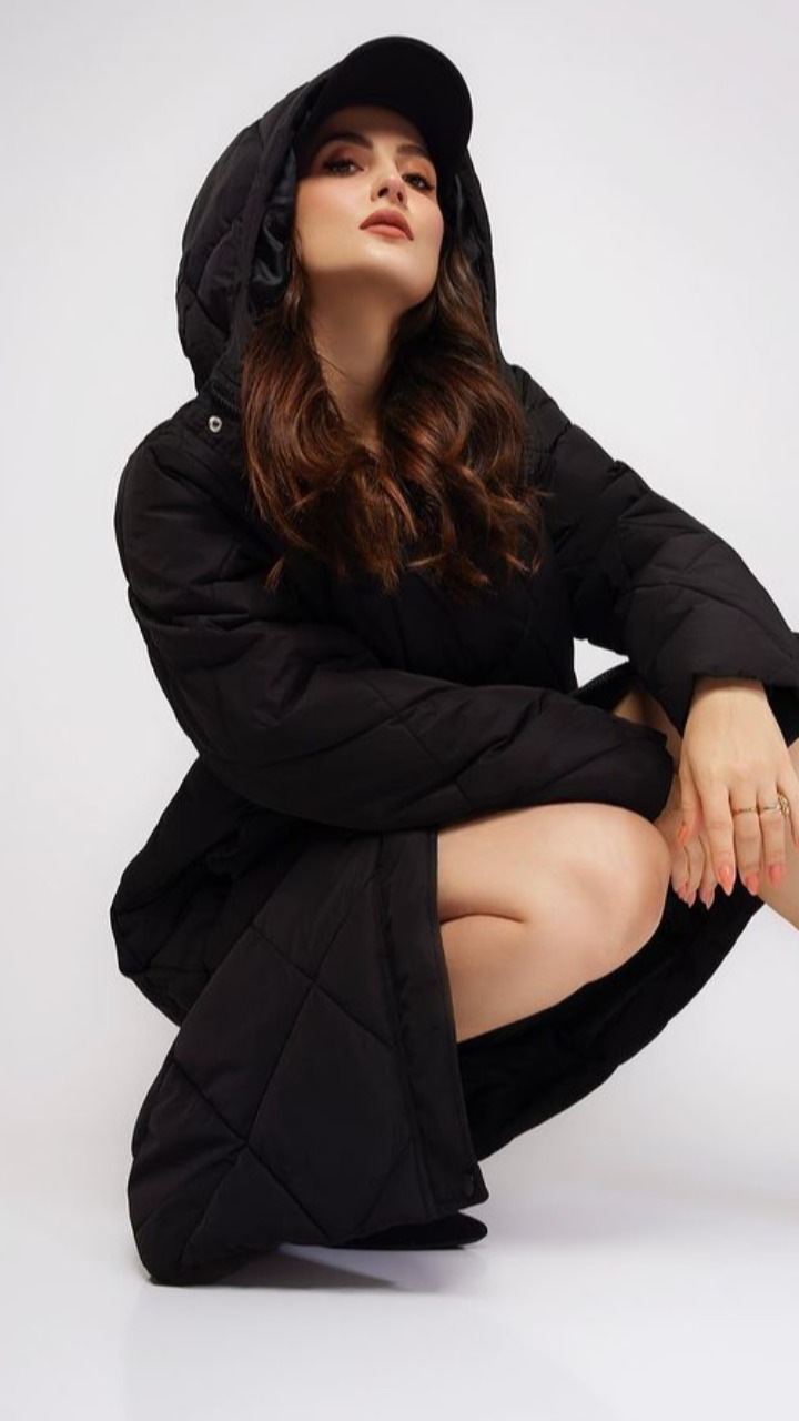 विंटर में एली का ये लेदर जैकेट वूलन कैप संग हाईनेक टॉप आपको लुक देगा।