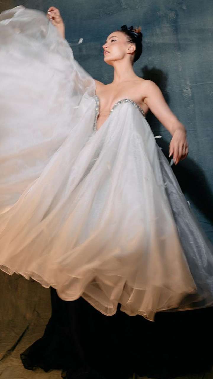 एक्ट्रेस स्विमिंग पूल के अंदर ब्राउन कलर की बैकलेस ड्रेस पहने बेहद बोल्ड अंदाज में नजर आ रही हैं।