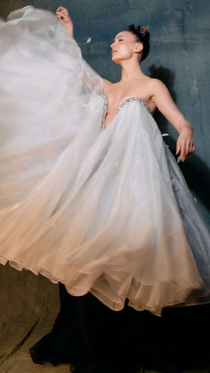 व्हाइट ऑफ शोल्डर टॉप और ब्लैक स्कर्ट में एक्ट्रेस बेहद सिजलिंग लुक देती नजर आ रही है।