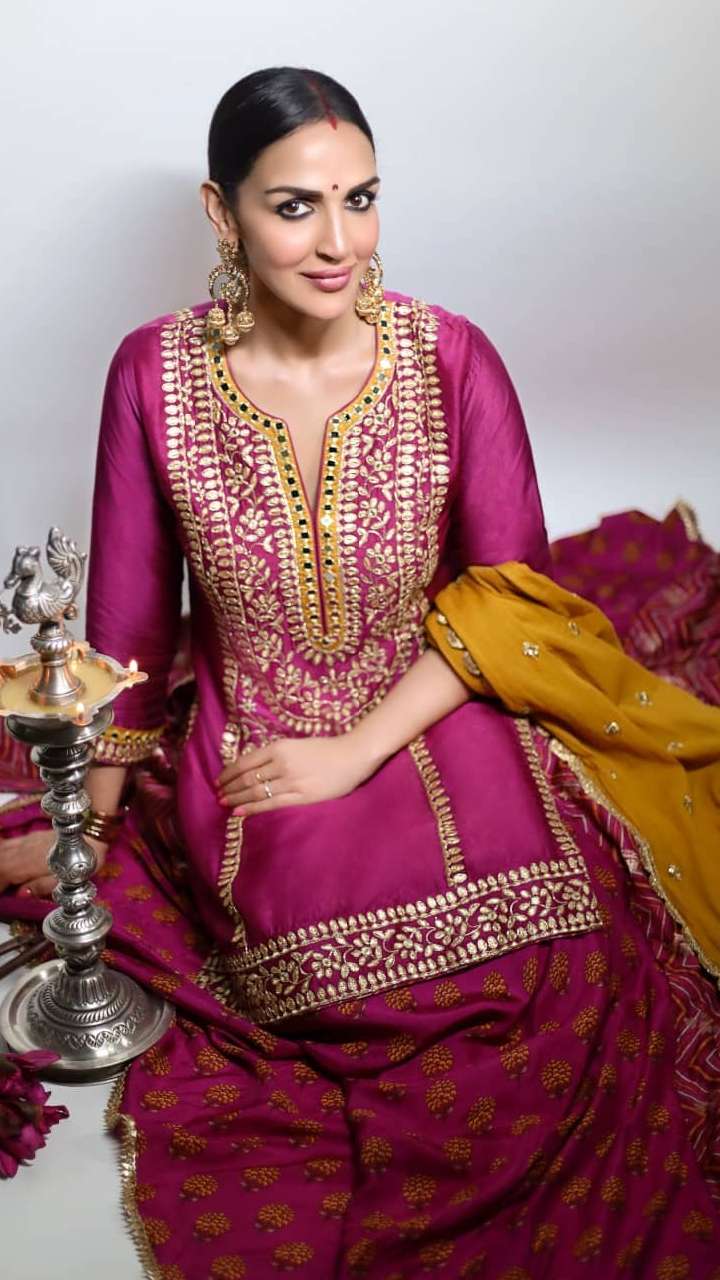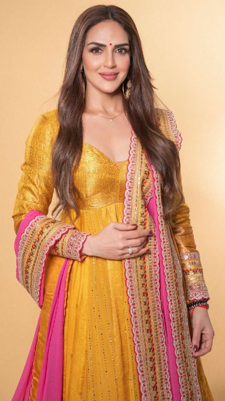 ईशा येलो कलर के सिल्क अनारकली सूट में कहर ढ़हा रही हैं। इसके संग उन्होंने कंट्रास्ट कलर के पिंक दुपट्टा पहना हुआ है।