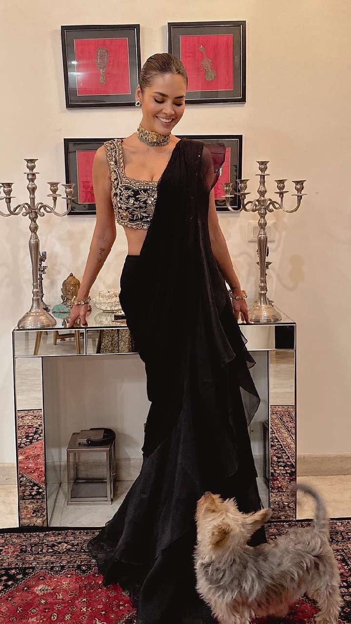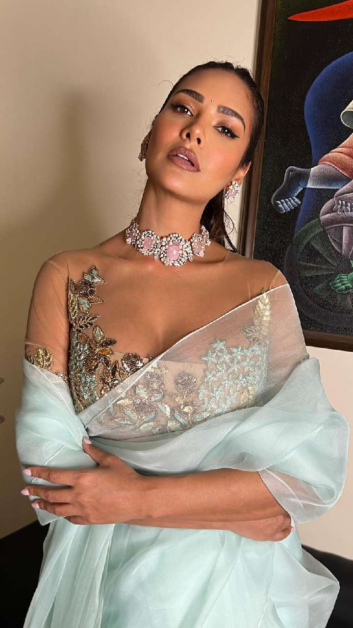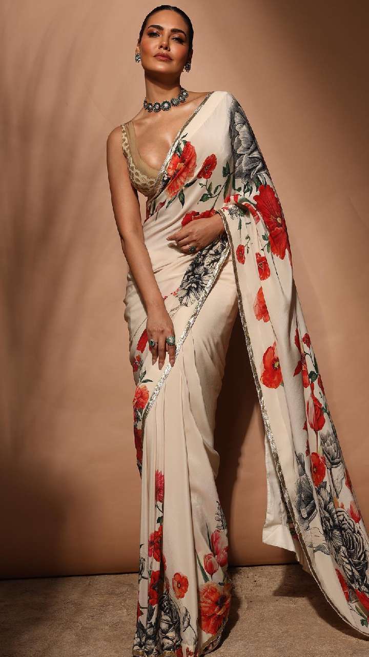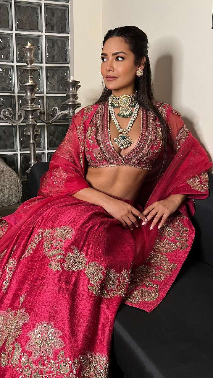 इस हेक्सागॉन डीपनैक ब्लाउज डिजाइन में ईशा काफी हॉट अंदाज में नजर आ रही हैं। आप भी डीवा के इस लुक को लहंगे के साथ पेयर कर सकती हैं।