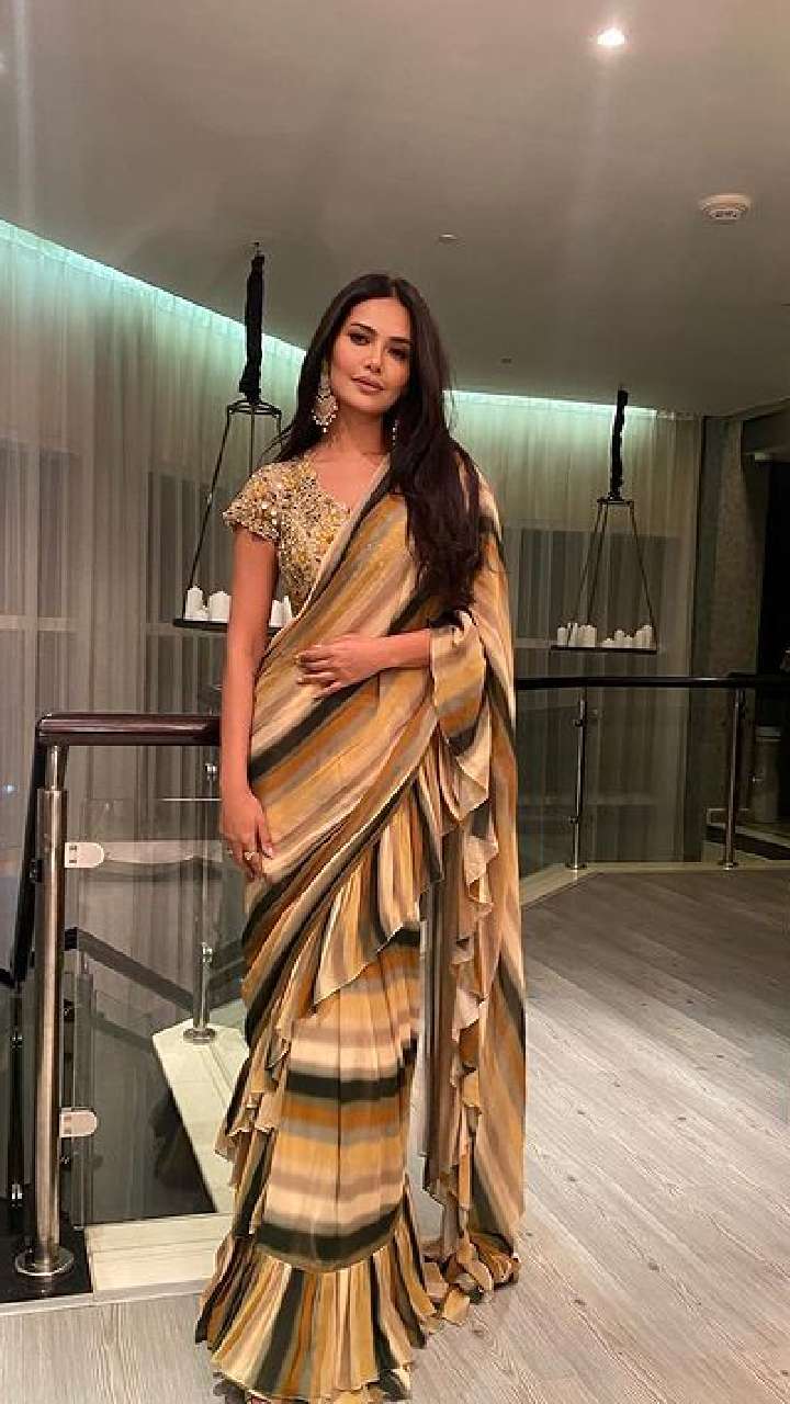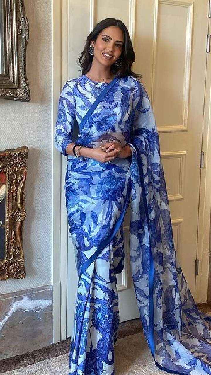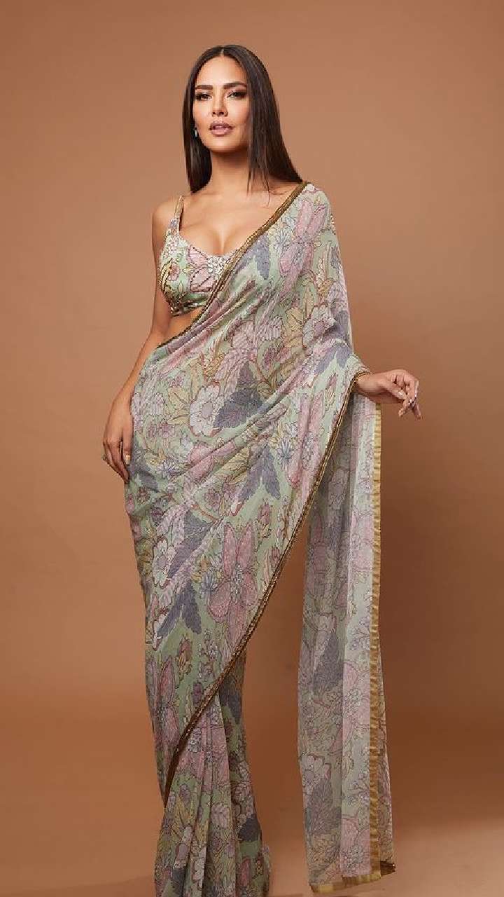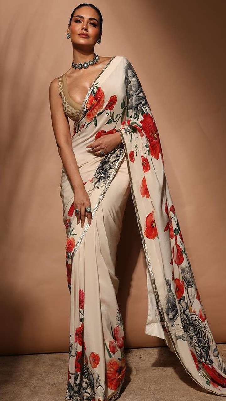 ईशा का ये फ्लोरल प्रिंट साड़ी संग डीपनैक ब्लाउज में सिजलिंग लुक देख फैंस भी मदहोश हो गए थे।