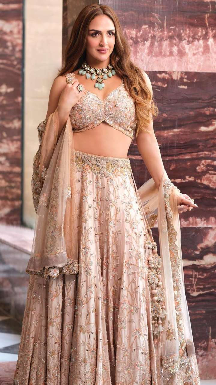 करण देओल की शादी में ईशा देओल ने काफी लाइमलाइट लूटी। एक्ट्रेस के लहंगा लुक्स सबसे अलग और अट्रैक्टिव थे।