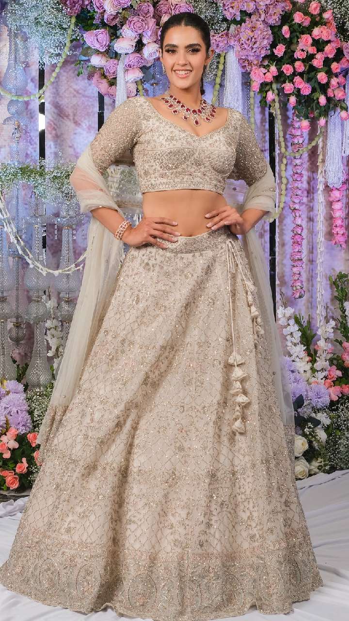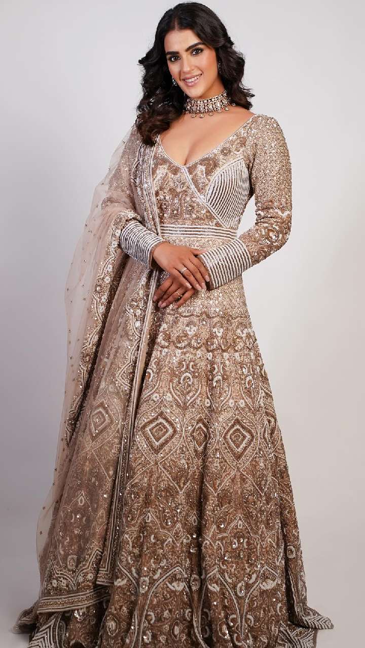 शादी में ग्लैमरस के साथ गॉर्जियस लुक कैरी करने के लिए आप एक्ट्रेस के इस हैवी और डिजाइनर लहंगे को स्टाइल कर सकती हैं। आप इसे बोल्ड मेकअप के साथ स्टाइल करें।