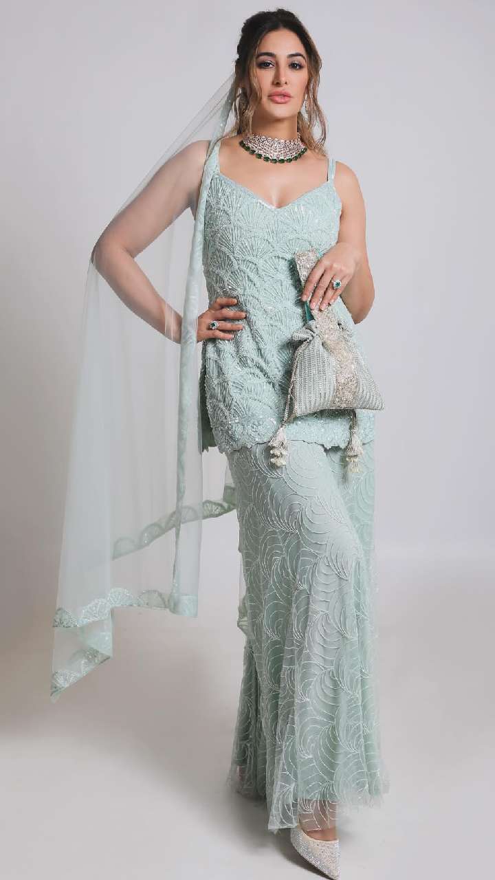 नरगिस फाखरी का ये डीप नेक शरारा पैटर्न सूट आपके लुक में चार चांद लगा देगा। फिलहाल शरारा पैटर्न सूट काफी ट्रेंड में चल रहा है।