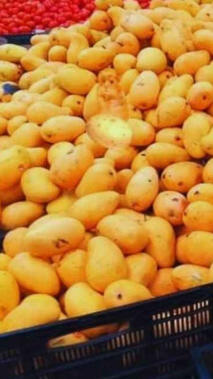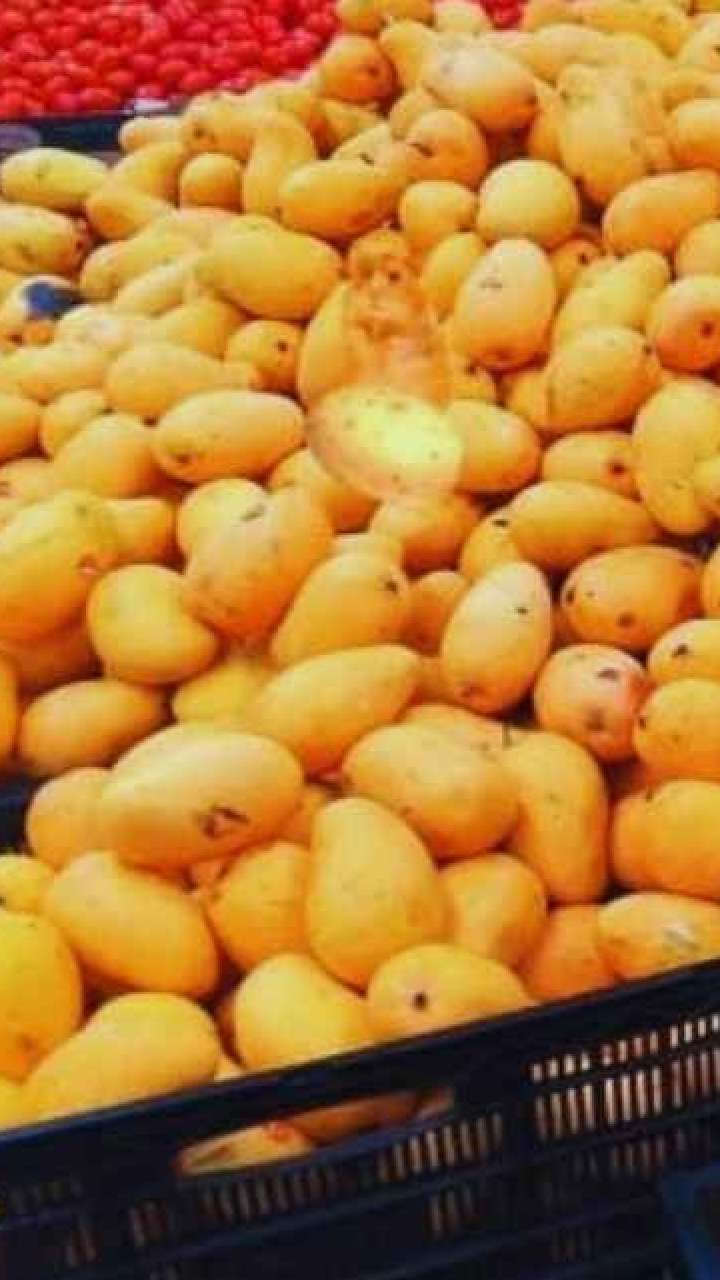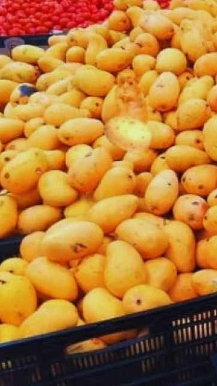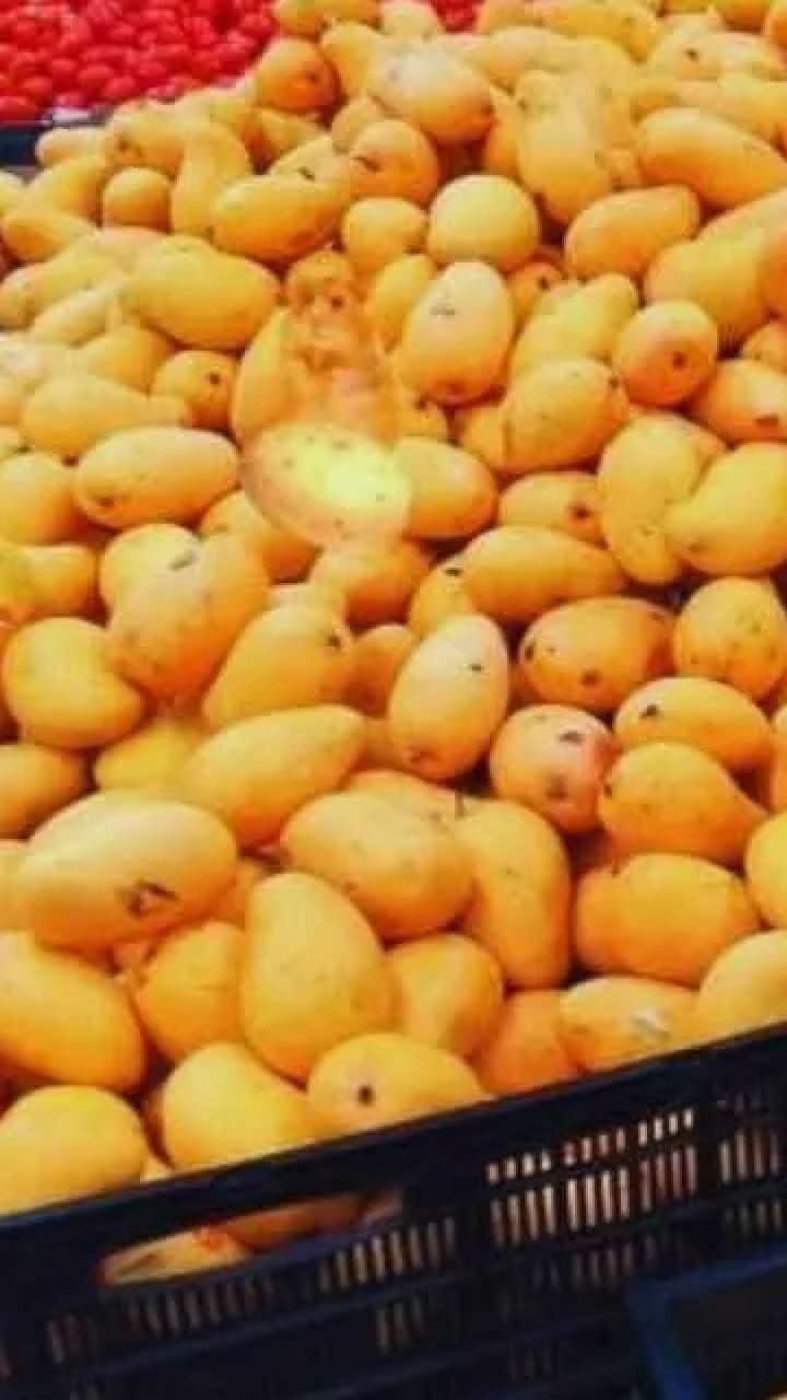 तस्वीर में आपको आम से भरा एक कैरेट नजर आ रहा होगा, इन पीले आमों के बीच में एक हैम्स्टर भी छिपा बैठा है।
