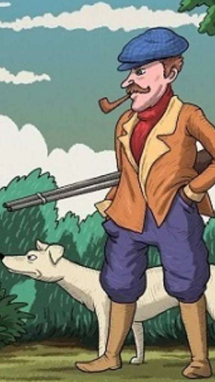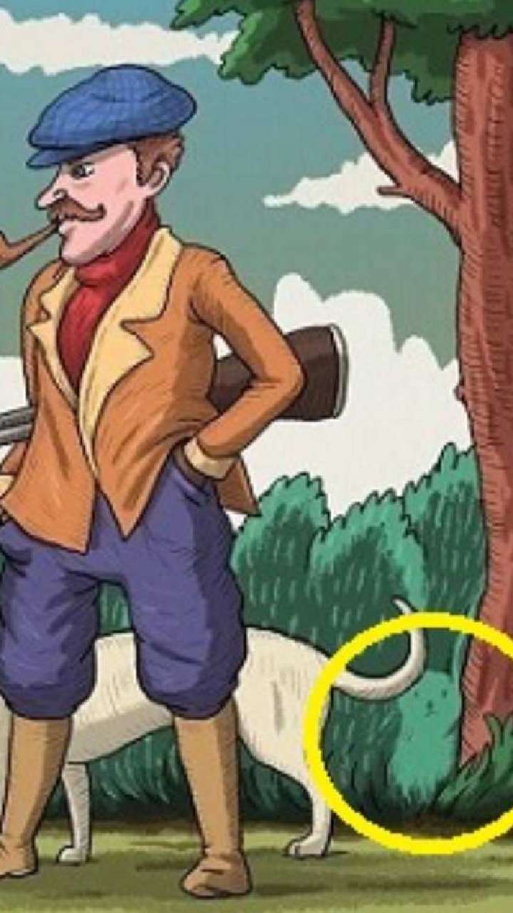 इस ऑप्टिकल इल्यूजन में एक शिकारी है और उसके साथ जंगल में एक कुत्ता भी खड़ा है।