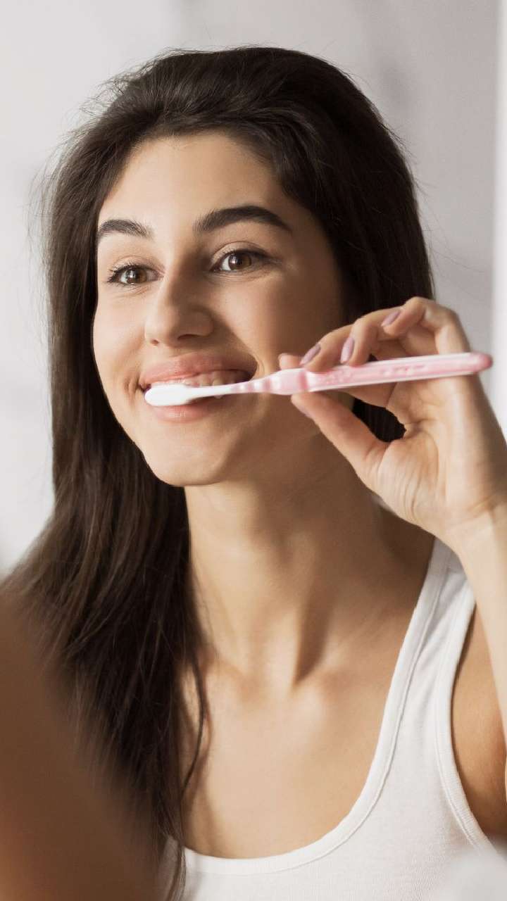 सुबह और रात को ब्रश करने से दांतों की सतह पर जमा प्लाक और बैक्टीरिया हट जाते हैं। फ्लोराइड युक्त टूथपेस्ट इस्तेमाल करें। ब्रश 2 मिनट तक धीरे-धीरे करें, ताकी सभी दांत साफ हों।