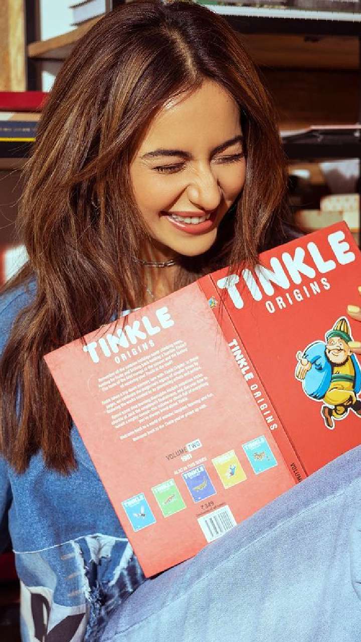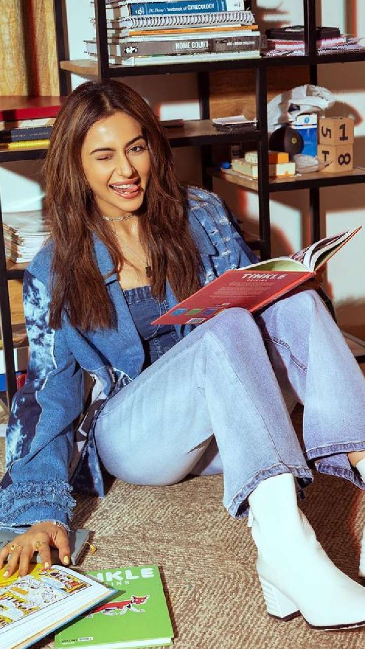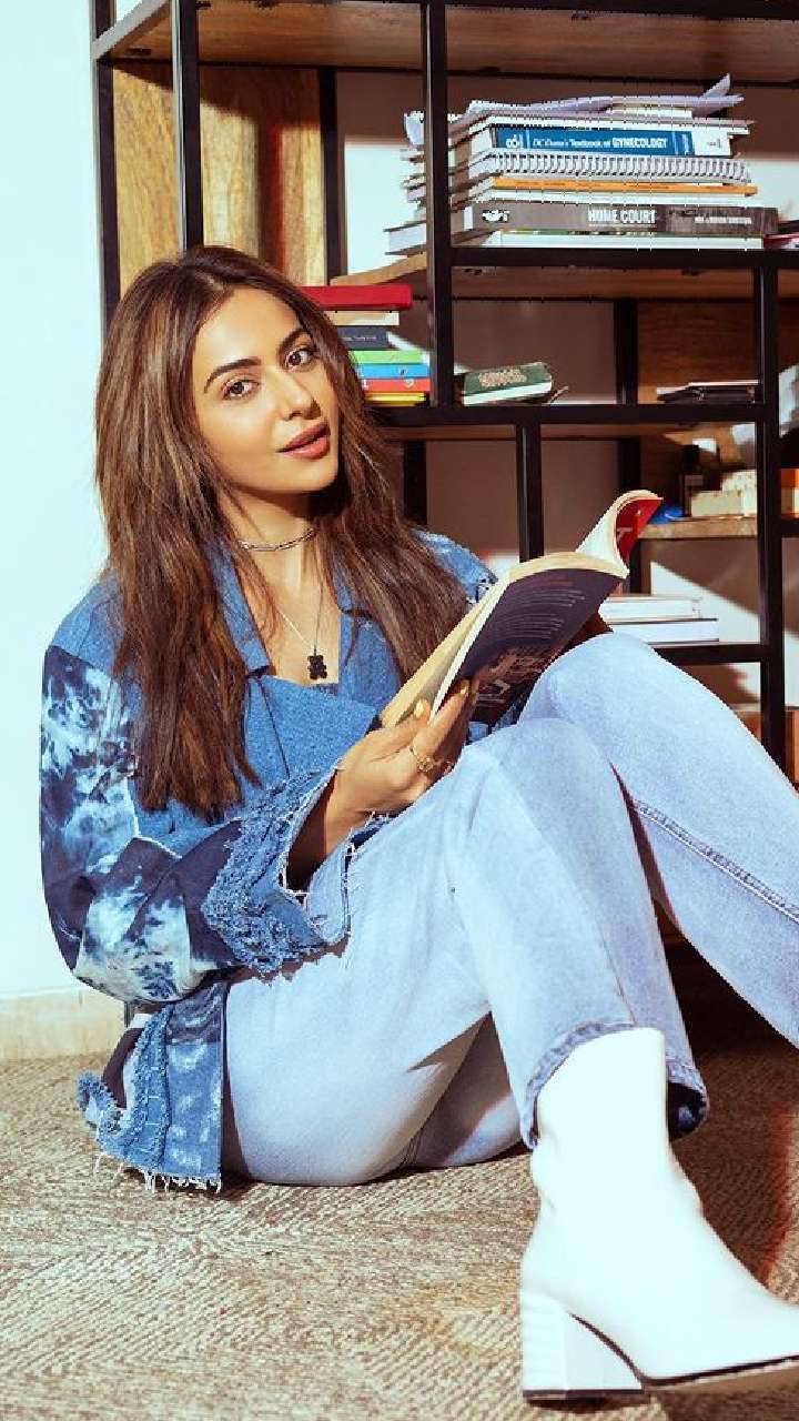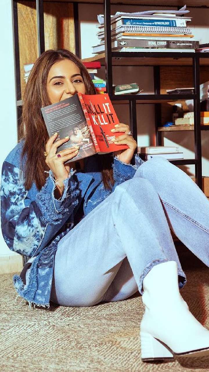 अगर आपको बुक्स पढ़ना पसंद है और उनके साथ क्यूट फोटोज क्लिक करवाना है तो रकुल के इन पोज को फॉलो करें।