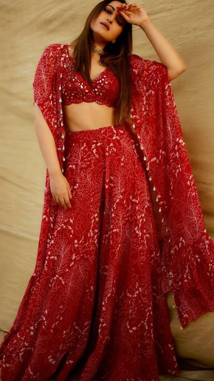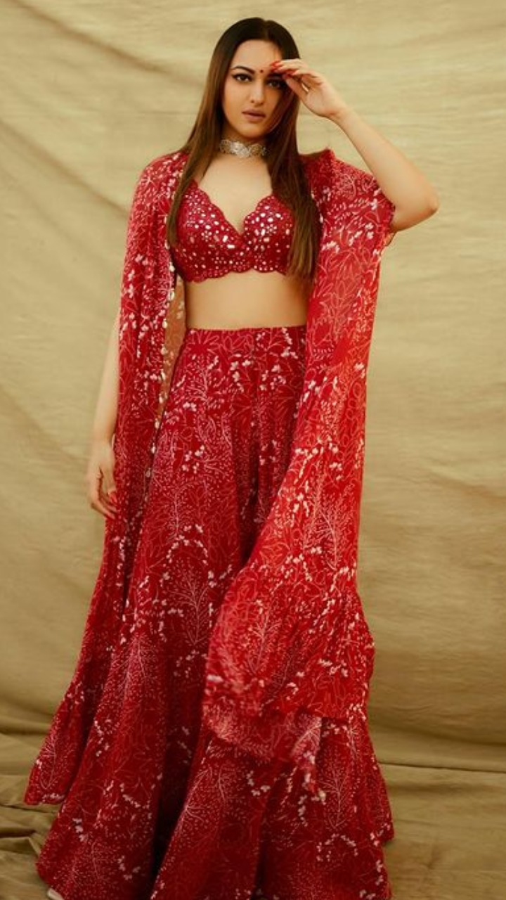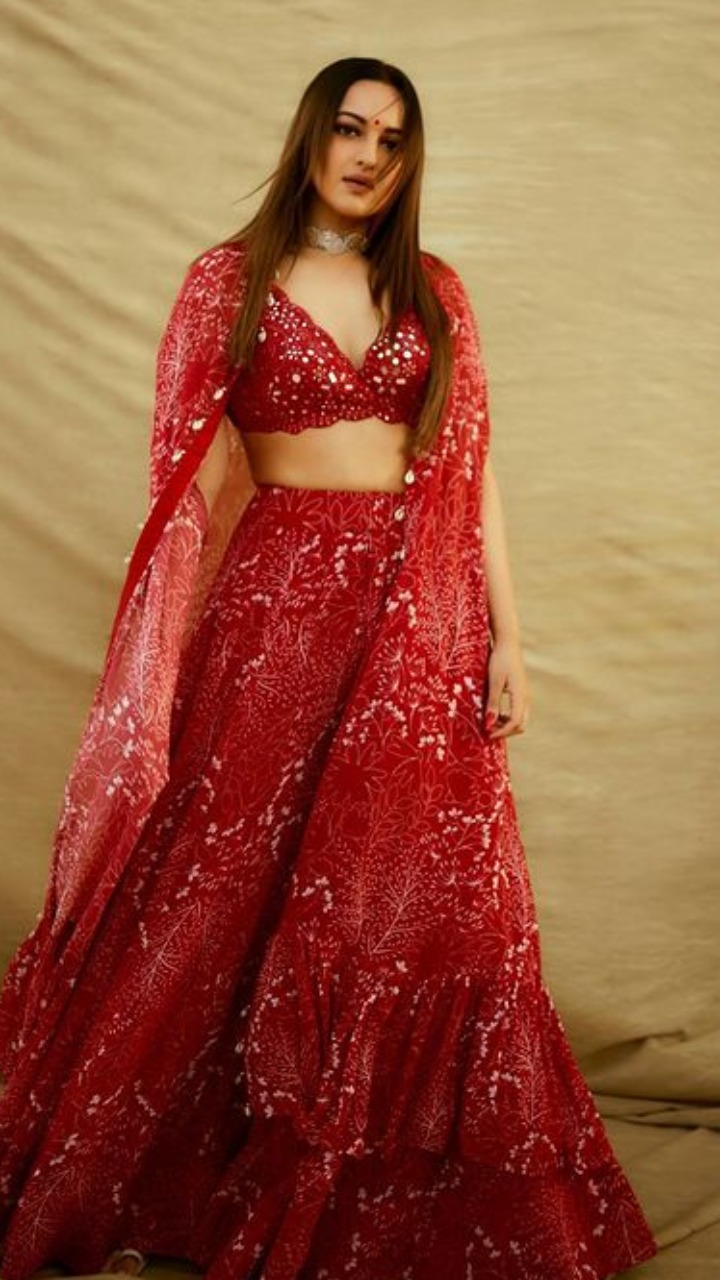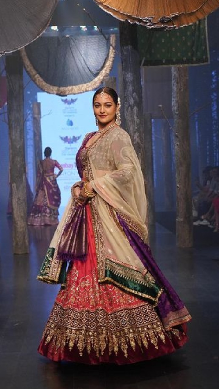 सोनाक्षी ने मल्टी कलर का लहंगा कैरी किया हुआ है और साथ में पूरा ट्रेडिशनल लुक अपनाया है।