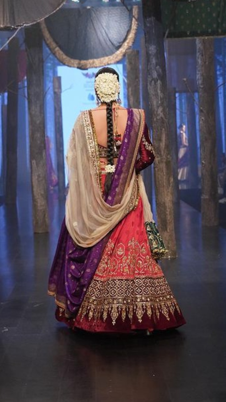 ब्यूटीफुल लहंगे के साथ एक्ट्रेस ने जूड़ा बनाया है और साथ में गजरा भी लगाया हुआ है।