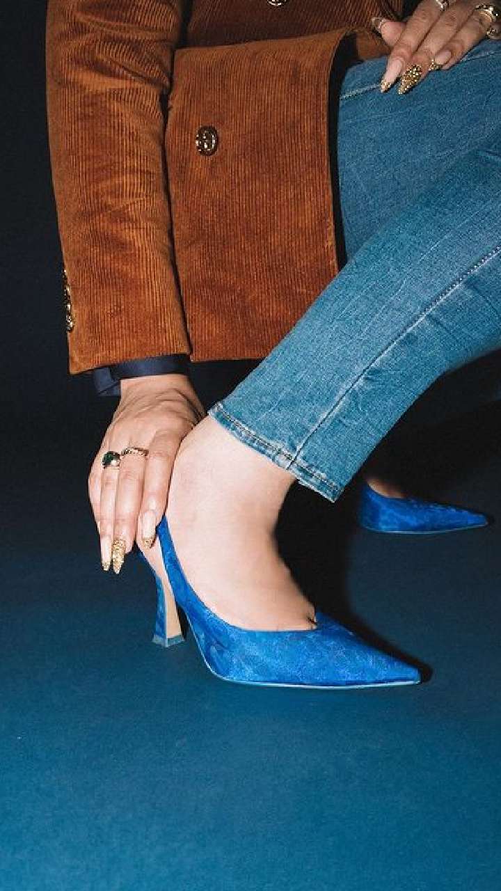 एक्ट्रेस ने गले में चैन, और ब्लू कलर की बैली कैरी की है। साथ ही वेवी हेयर स्टाइल की है।