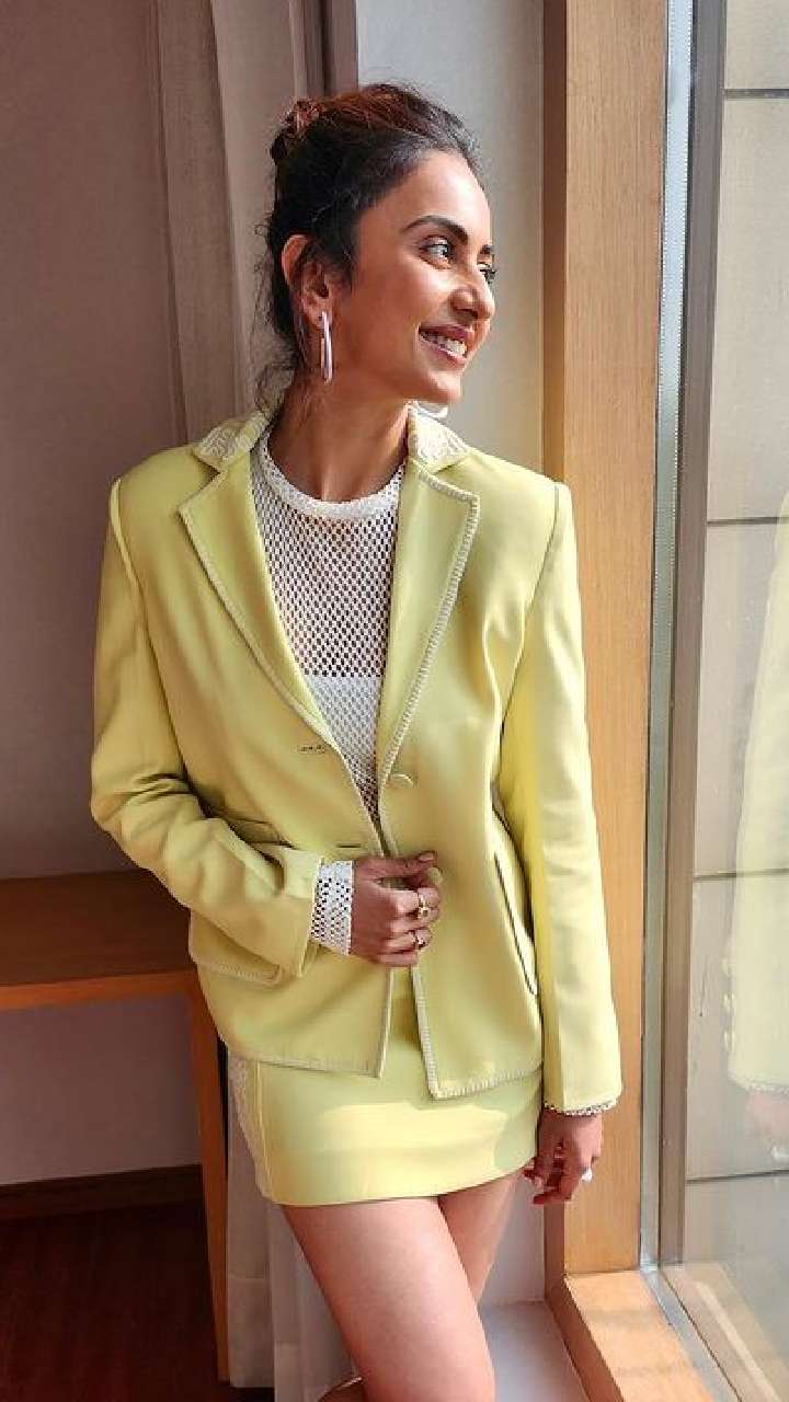 राकुलप्रीत सिंह के ये प्रोफेशनल आउटफिट बेहद क्लासी और हॉट है आप इन लुक्स को कैरी कर सकते हैं।