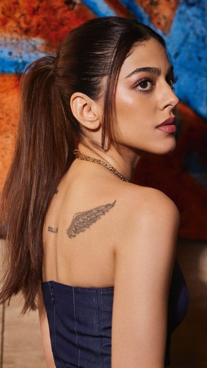 स्टार किड अलाया इस बैकलेस तस्वीर में टैटू फ्लॉन्ट करती फैंस को काफी हसीन लग रही हैं।