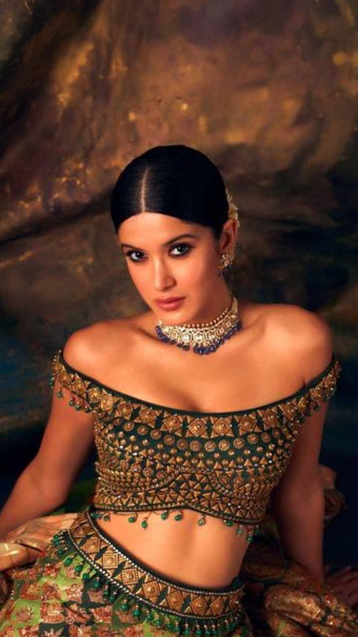 बोट नेक लहंगे के साथ शनाया कपूर का यह लहंगा लुक बेहद शानदार हैं। सिंपल लुक को भी अट्रैक्टिव बनाने के लिए आप यह स्टाइल फॉलो कर सकती हैं।