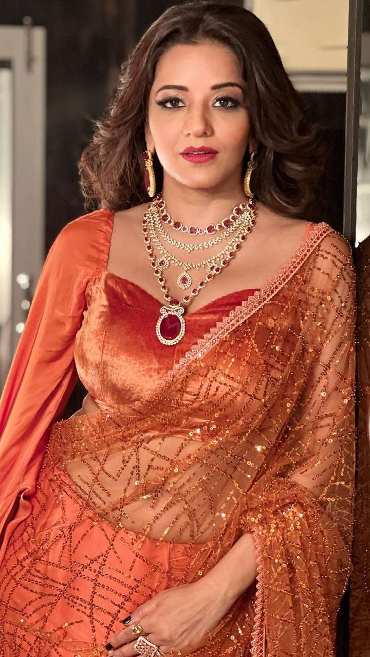 मोनालिसा भोजपुरी के साथ-साथ हिंदी टेलीविजन में भी काम कर रहीं हैं, एक्ट्रेस के साड़ी लुक्स गजब के हैं।