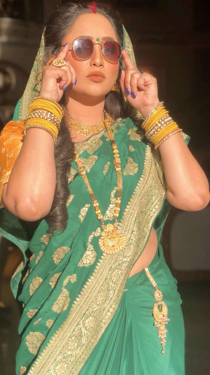 रशमि देसाई ने भोजपुरी सिनेमा के साथ-साथ हिंदी टेलीविजन में भी काफी नाम कमाया है, इस साड़ी में एक्ट्रेस काफी खूबसूरत लग रहीं हैं।