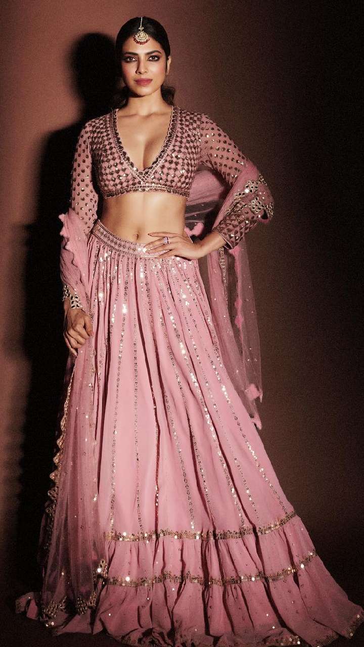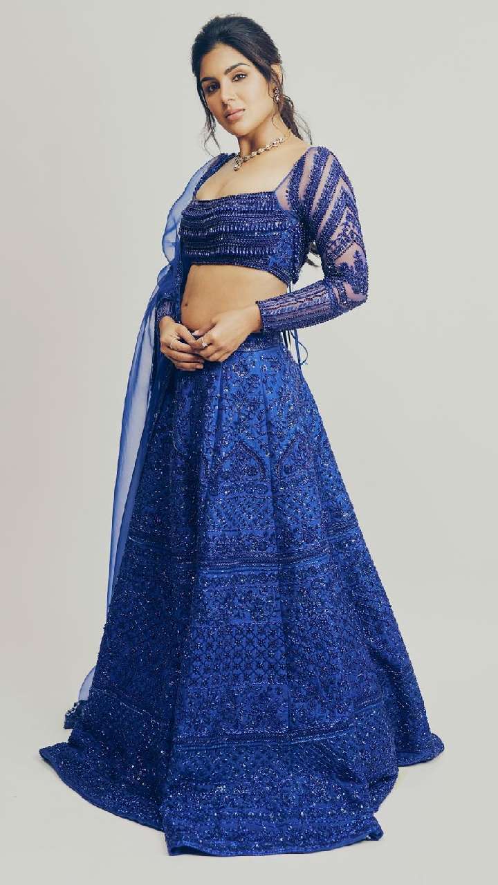 एक्ट्रेस ने ब्लू कलर के खूबसूरत लहंगे के साथ ब्लाउज को स्टाइल किया हुआ है। अगर आप फुल स्लीव्स ब्लाउज में कुछ स्टाइलिश डिजाइन ढूंढ रही हैं, तो एक्ट्रेस का यह ब्लाउज आपके लिए बेस्ट है।