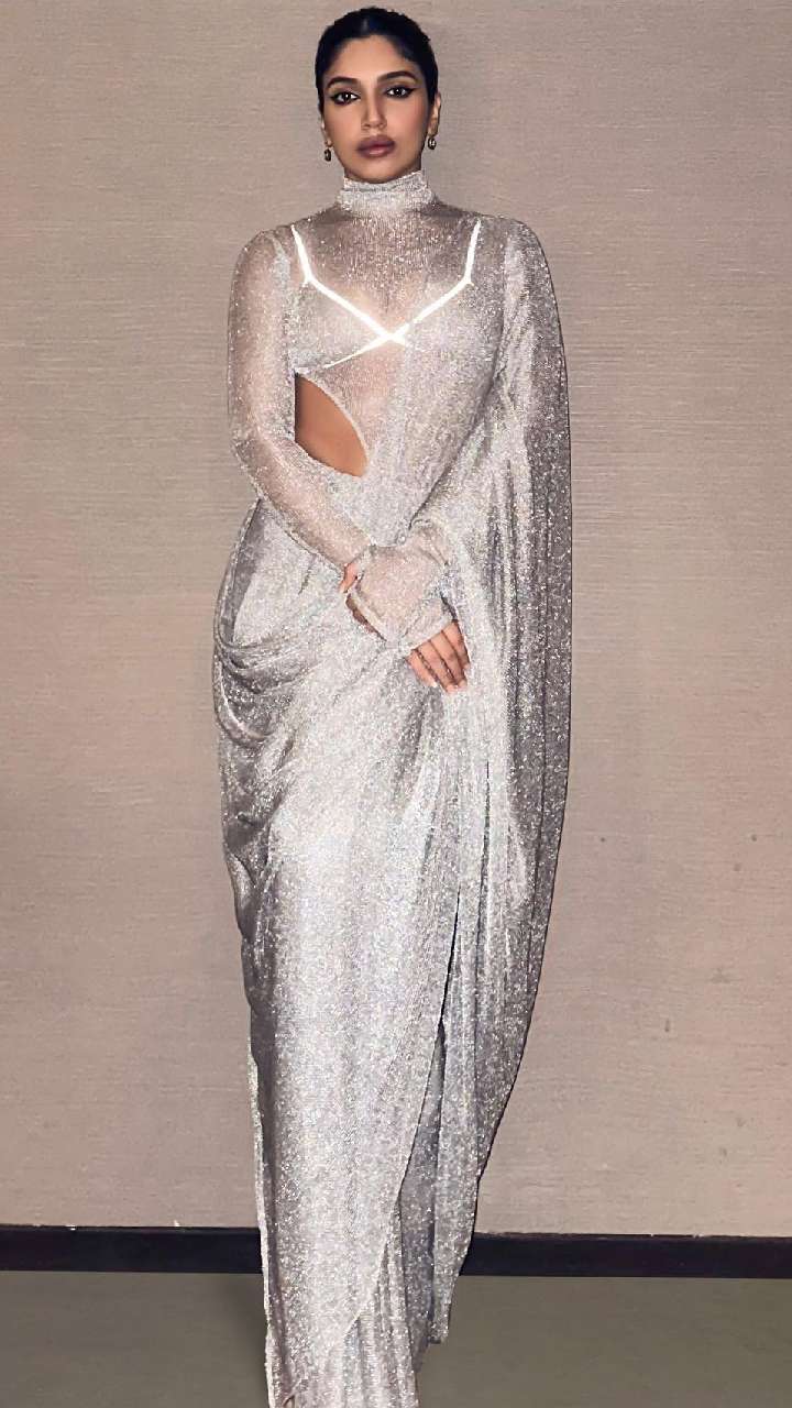 यह हाई नेक शिमरी ब्लाउज Bhumi की साड़ी को बेहद हाइलाइट कर रहा है। लड़कियां साड़ी को अट्रैक्टिव लुक देने के लिए ऐसा शिमरी हाई नेक ब्लाउज ट्राई कर सकती हैं। इसमें आपकी फिगर और परसनैलिटी बेहद एलिगेंट लुक देगी।