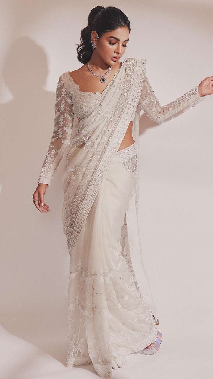 एक्ट्रेस के इस व्हाइट कलर के स्क्वायर नेक ब्लाउज के साथ साड़ी को एलिगेंट लुक दे सकती हैं। आप पार्टी में ब्लाउज को डार्क न्यूड मेकअप के साथ स्टाइल करके अपने लुक में चार चांद लगा सकती हैं।