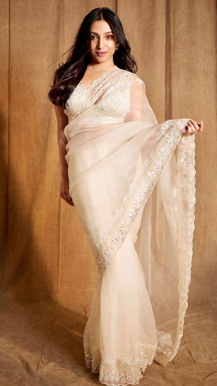 एक्ट्रेस व्हाइट कलर की साड़ी में बेहद किलर लुक देती नजर आ रही हैं।
