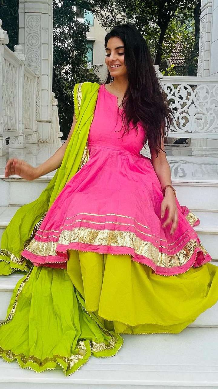 अन्वेषी जैन इस पिंक और ग्रीन कलर के सूट में काफी ज्यादा खूबसूरत लग रहीं हैं। एक्ट्रेस का हर अंदाज निराला होता है।