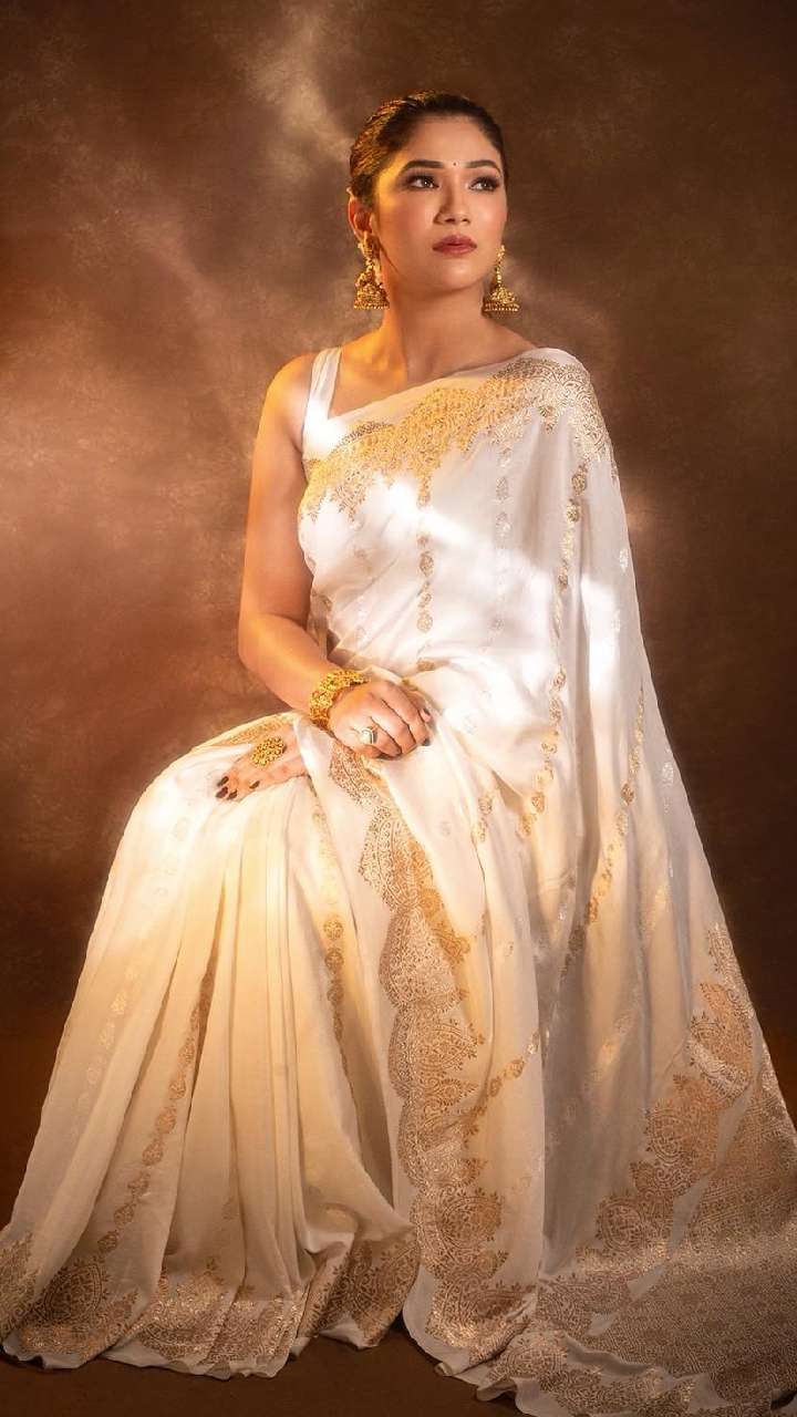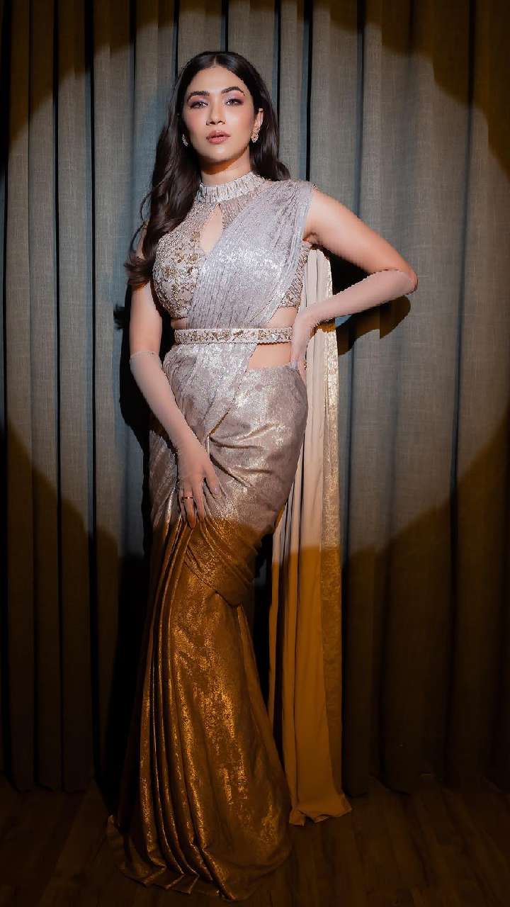 गोल्डन साड़ी में एक्ट्रेस का ये लुक काफी ज्यादा हॉट लग रहा है। अगर आप अपने लुक को हॉट बनाना चाहते हैं तो इस लुक को ट्राई करें।