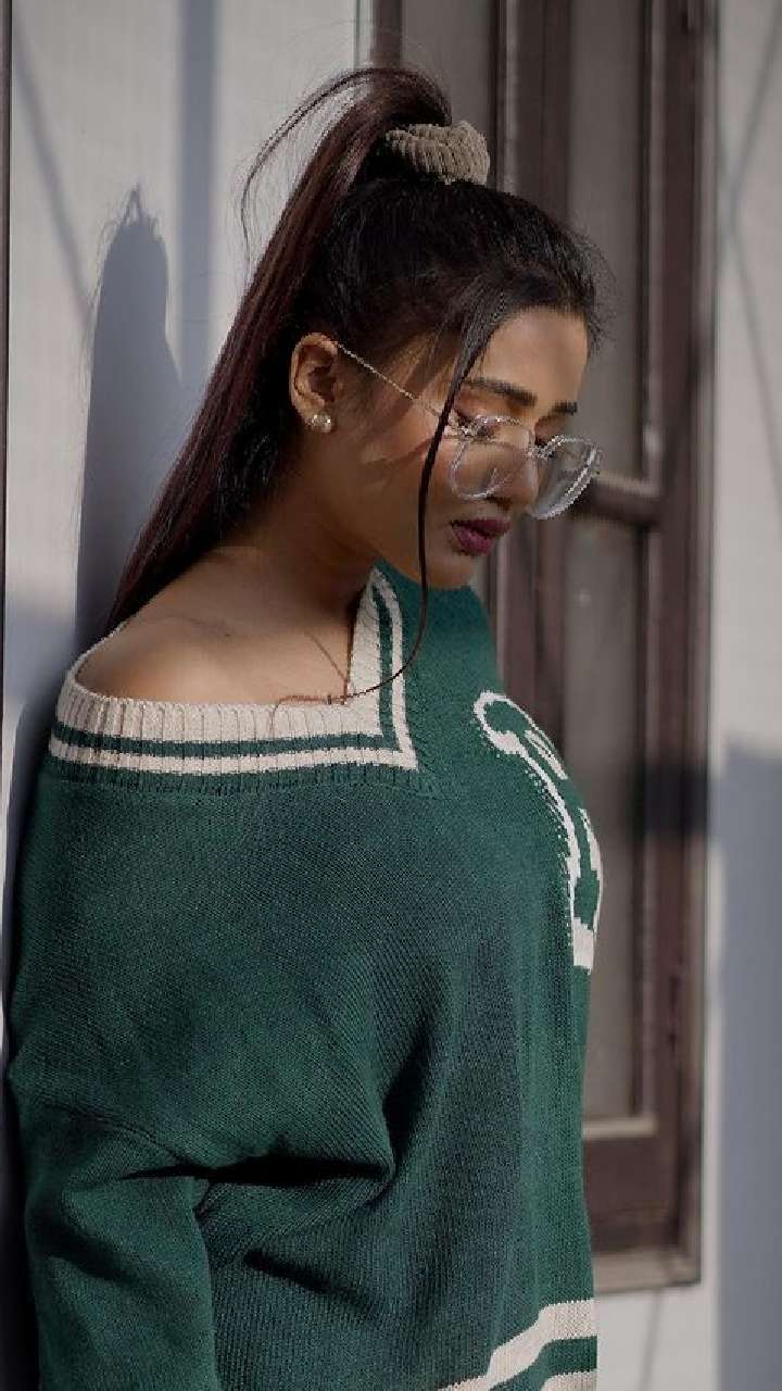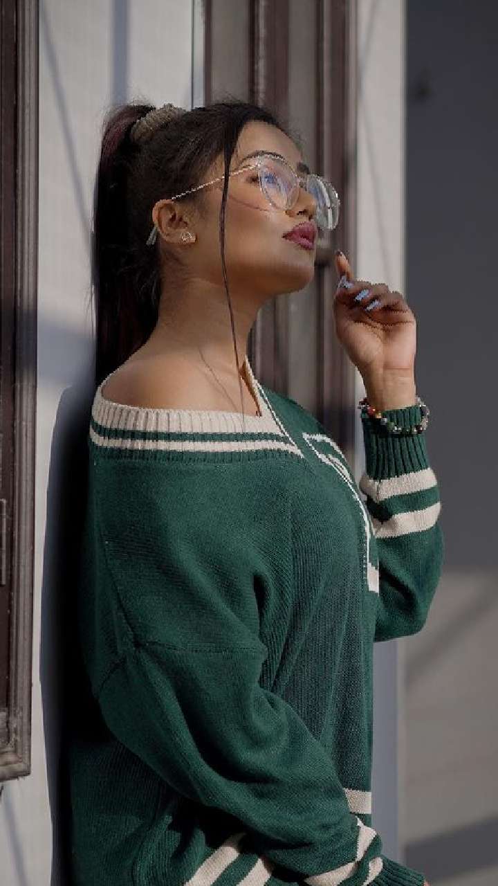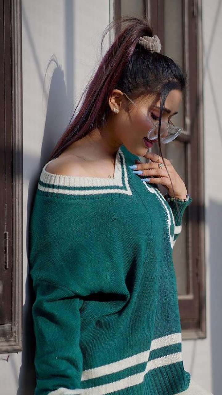 सोशल मीडिया स्टार ग्रीन कलर के वुलन टॉप में अपना क्लासी विंटर लुक शेयर किया है।