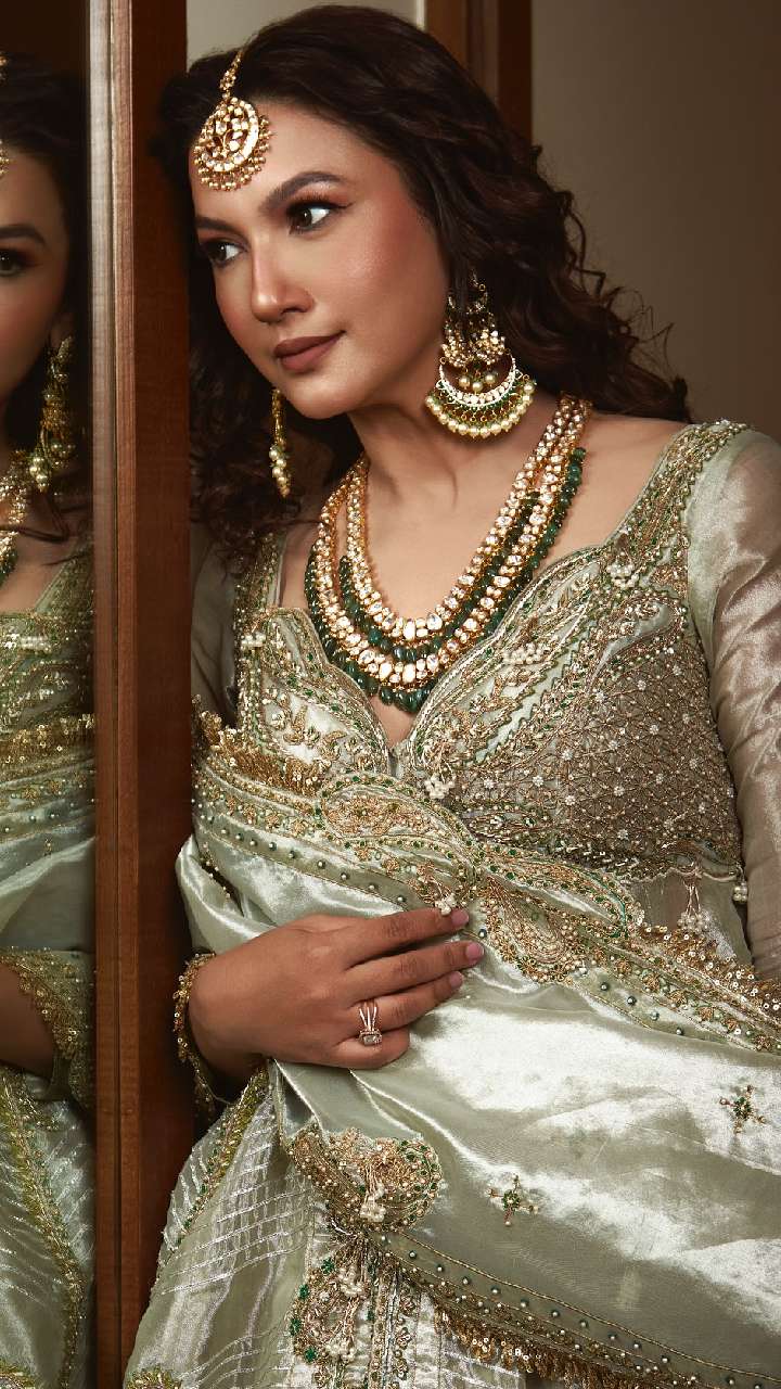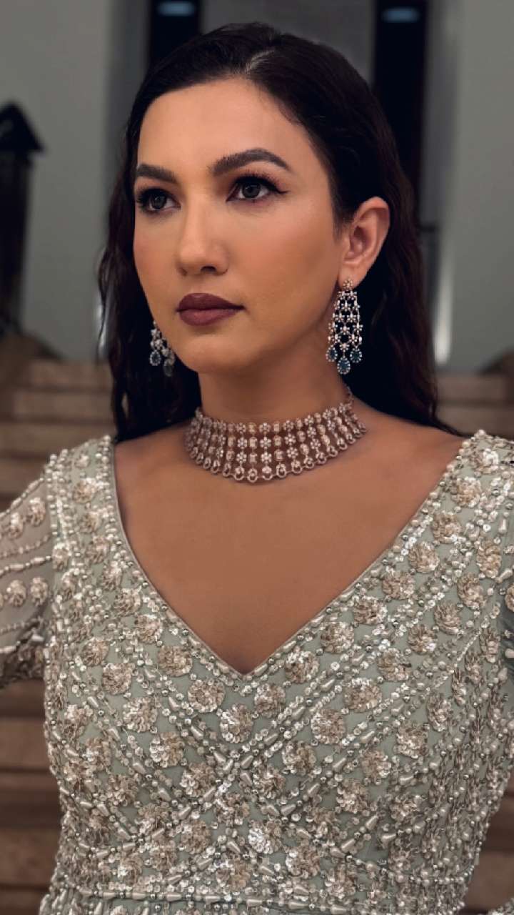 गौहर खान ने खूबसूरत चांदबाली इयररिंग पहने हैं। इस तरह के इयररिंग लहंगा और सूट पर खूब जचती हैं। आप भी उनके इस लुक को कॉपी करें।