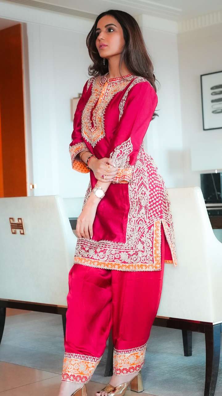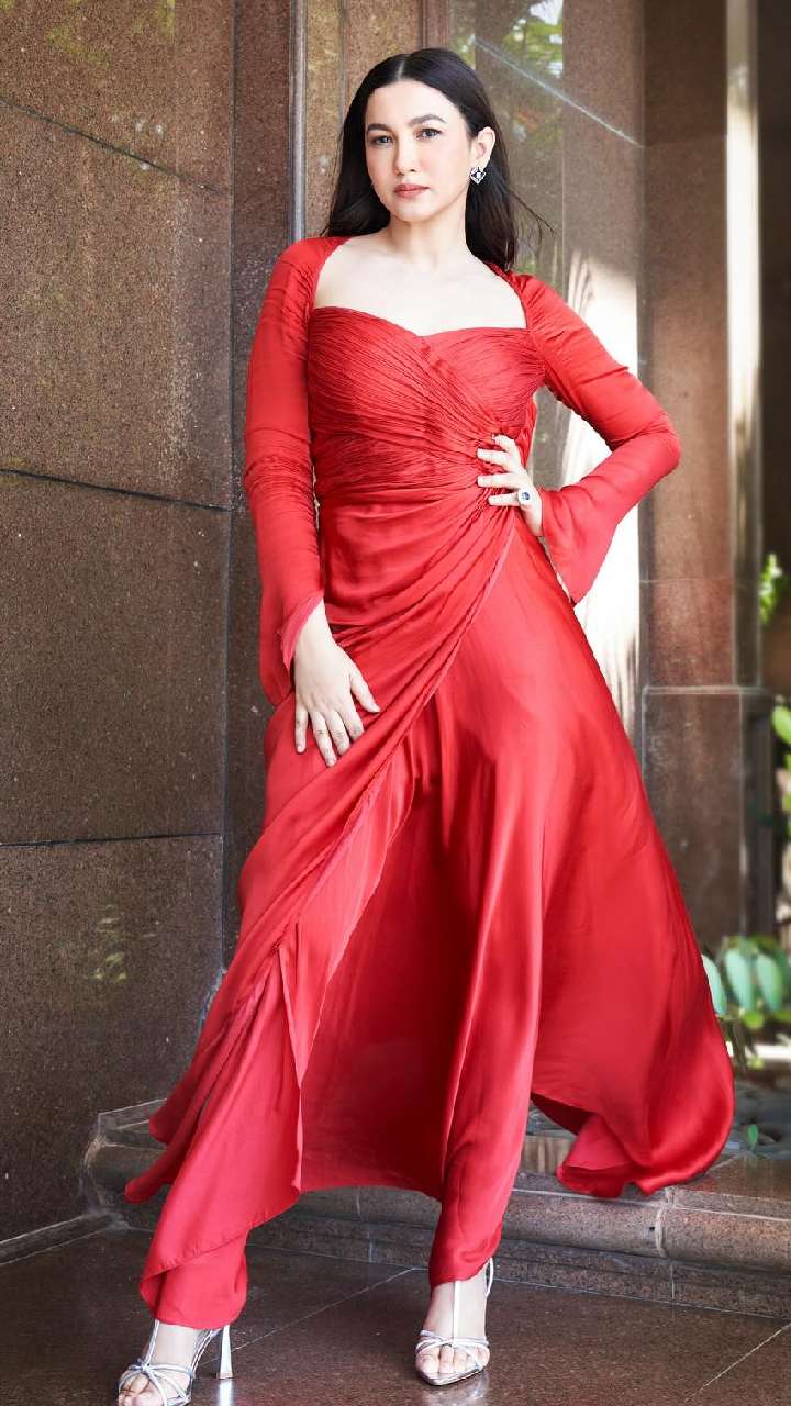 मॉम्स के लिए एक्ट्रेस का रेड ब्रॉड नेक गाउन भी बेस्ट चॉइस है। ये आपके लुक को कॉकटेल पार्टी में एकदम हॉट बना देगा।