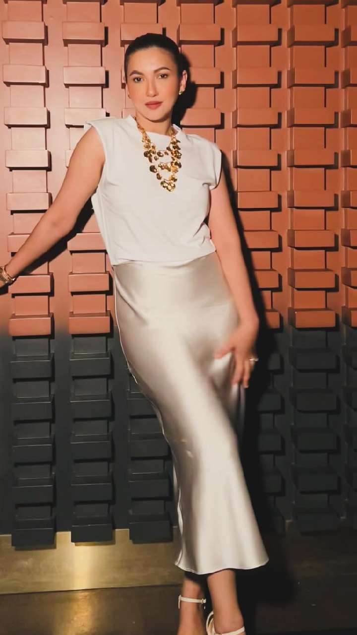 अभिनेत्री सिल्वर कलर की बॉडीकॉन स्कर्ट के साथ व्हाइट कलर के टॉप में काफी स्टाइलिश नजर आ रही हैं। मम्मियां इसे किसी भी मौके पर पहन सकती हैं।