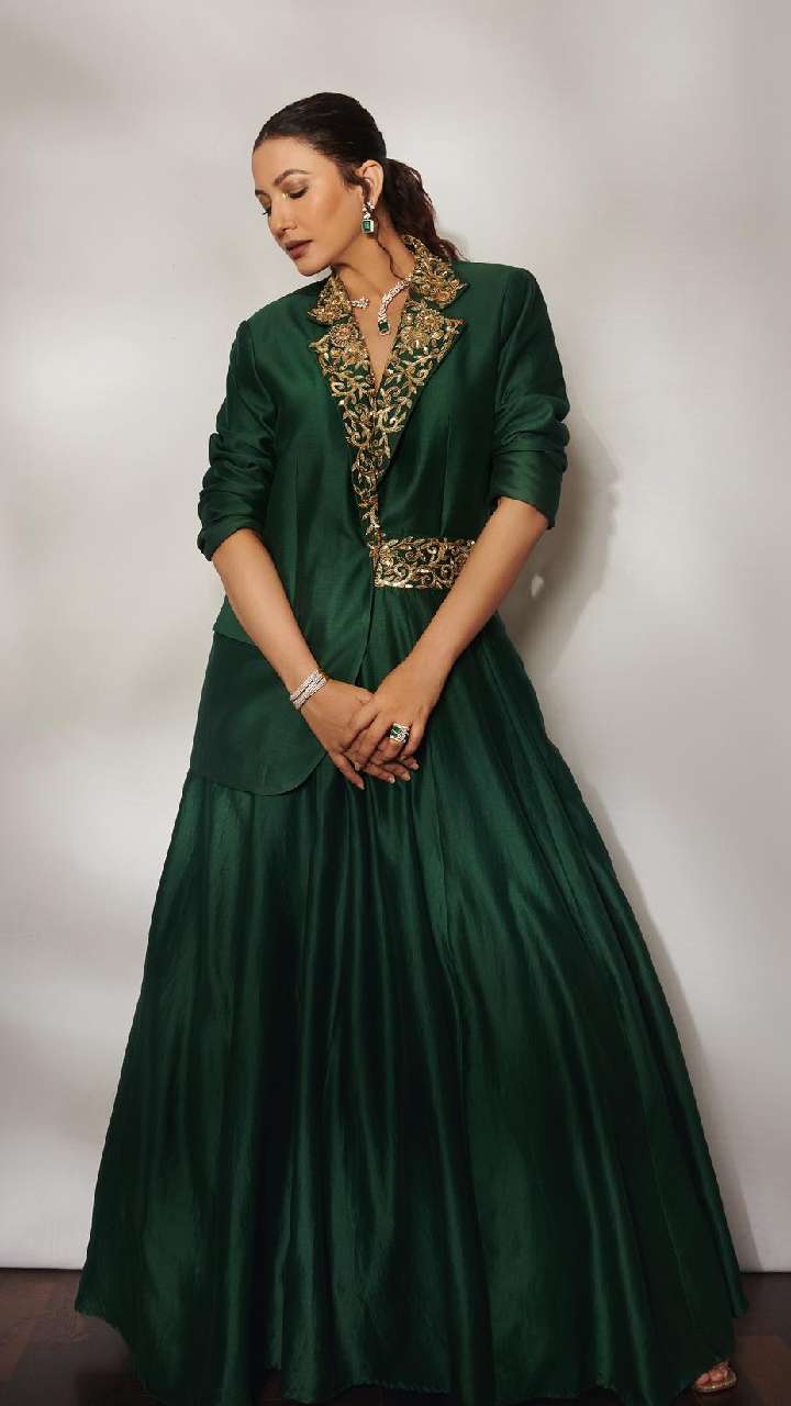 अगर आप मेहंदी फंक्शन के लिए शानदार ड्रेस सर्च कर रहीं हैं तो आप एक्ट्रेस के इस इंडो वेस्टर्न लुक को कैरी कर सकती हैं।