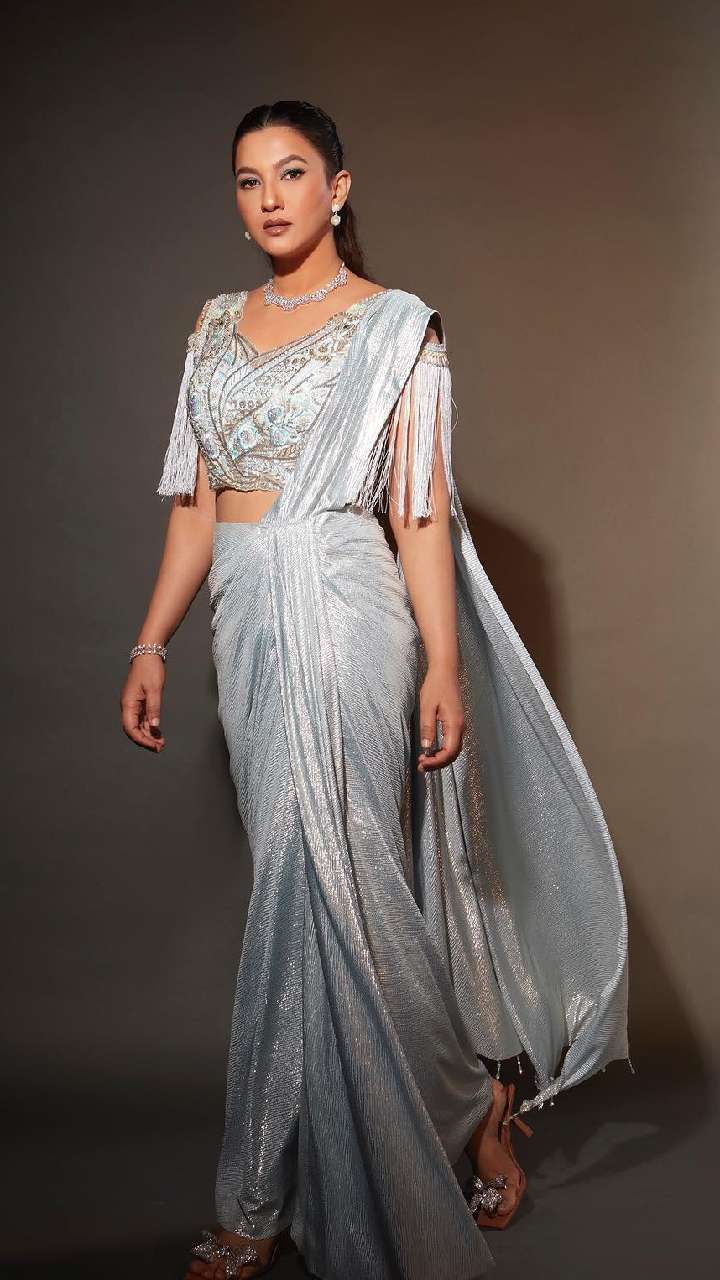 यदि आपको पेस्टल कलर पहनना का शौक है। तो गौहर का ग्रे सेक्विन फुल वर्क लहंगा आपको एकदम रॉयल लुक देगा। इसके साथ डार्क मेकअप बेस्ट रहेगा।