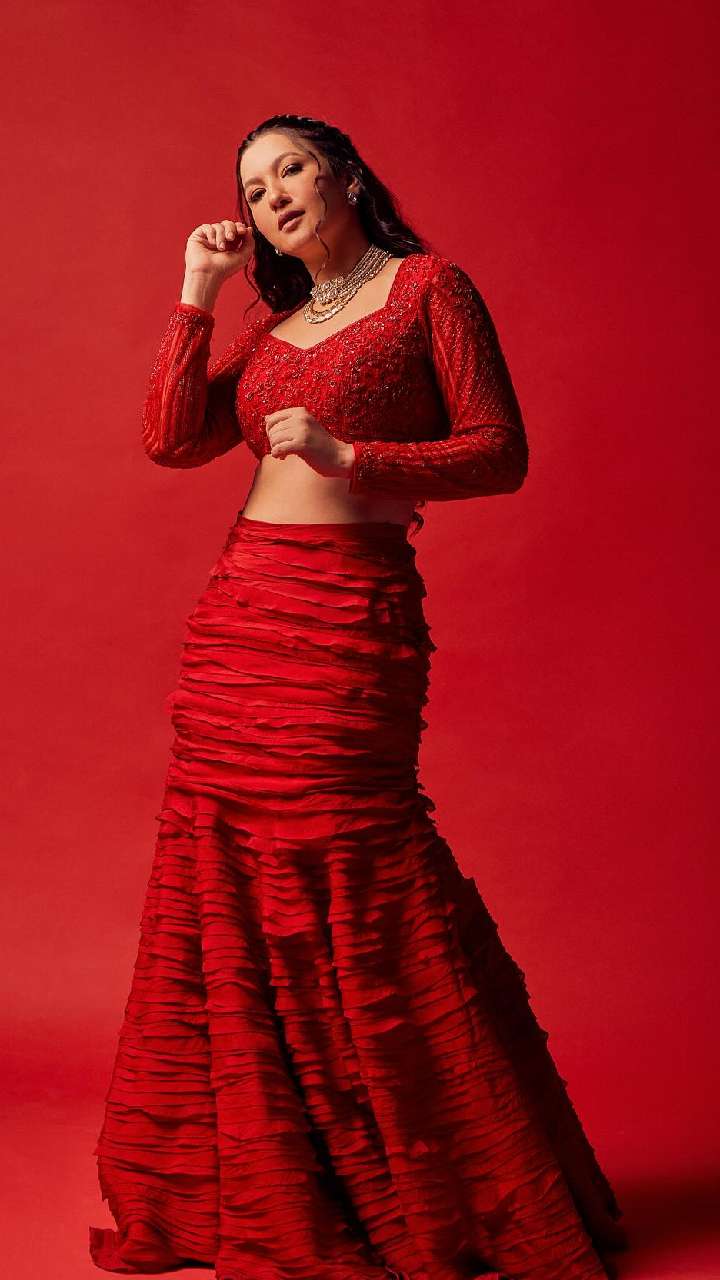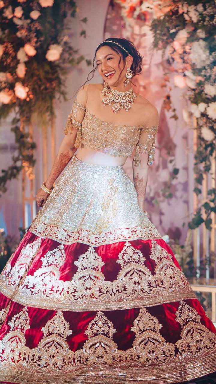 गौहर ने रेड कलर के सेक्विन वर्क लहंगे में अपना हॉट लुक शेयर किया है। वलीमा पार्टी के लिए ये एकदम बेस्ट रहेगा।