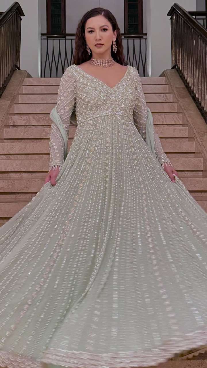 इस हैवी वर्क अनारकली सूट में गौहर खान काफी खूबसूरत नजर आ रही हैं। इस तरह की ड्रेस शादी या किसी भी फंक्शन में एलीगेंट लुक देंगे। इन्हें ट्राई करना न भूलें।