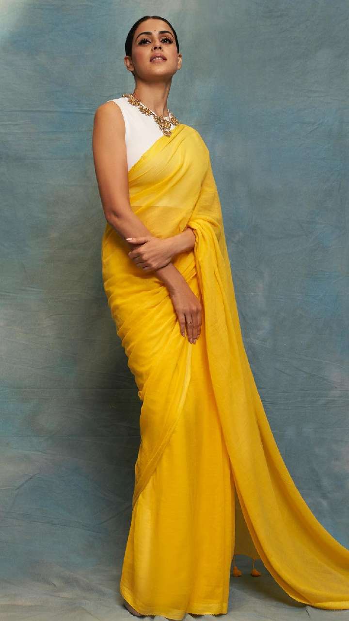 ऑफिस इवेंट में साड़ी पहनने का मन है, तो एक्ट्रेस के इस लुक को जरूर कॉपी करें। उन्होंने येलो कलर की साड़ी के साथ व्हाइट कलर का ब्लाउज कैरी किया है, जो उनके लुक को शानदार बनाने में मदद कर रहा है।