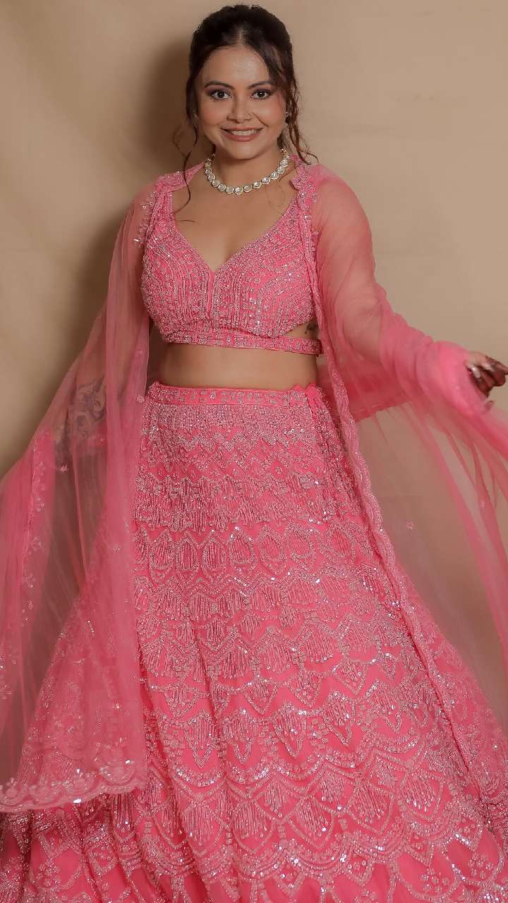 हाल में डीवा आरती सिंह की शादी में पिंक कलर के लहंगे डीपनैक चोली कैरी करके पहुंची थीं। अभिनेत्री का गॉर्जियस हैवी वर्क लहंगा पार्टी में लाइमलाइट बना रहा।