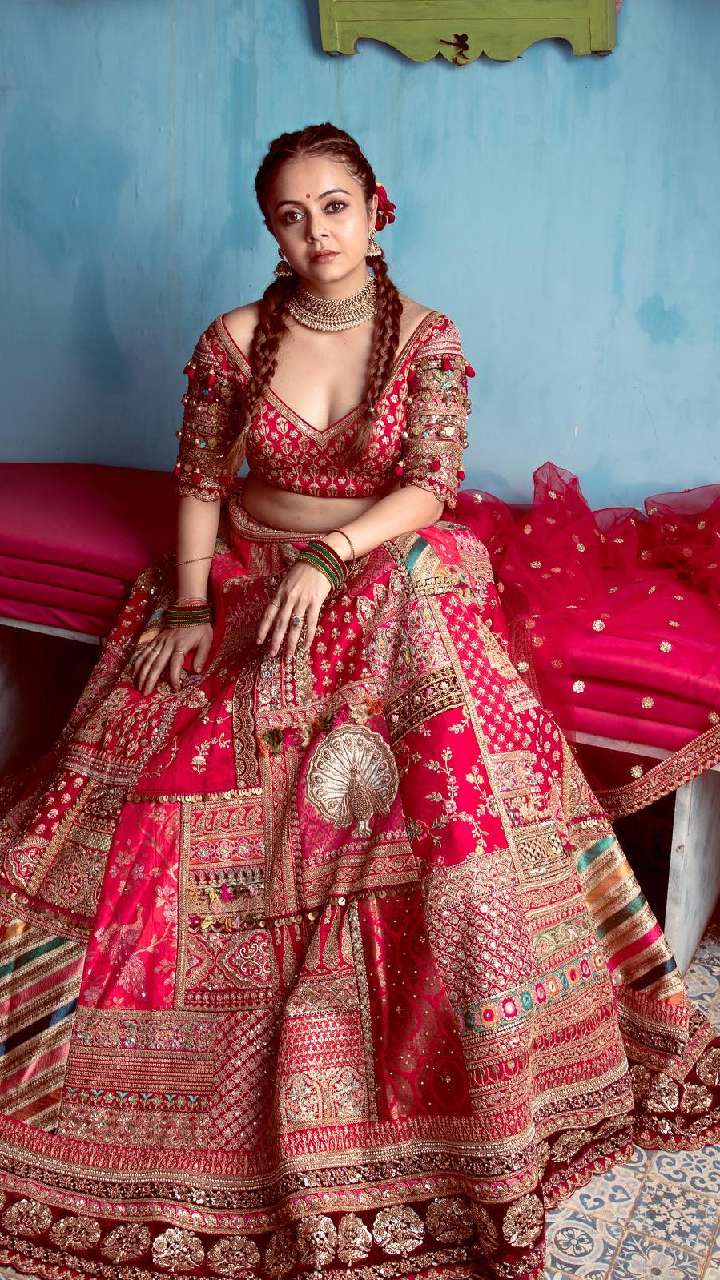 ब्राइडल एक्ट्रेस के रेड कलर गोल्डन वर्क लहंगे से आइडिया ले सकती हैं। उनका ये लहंगा उनके लुक में चार चांद लगा देगा।