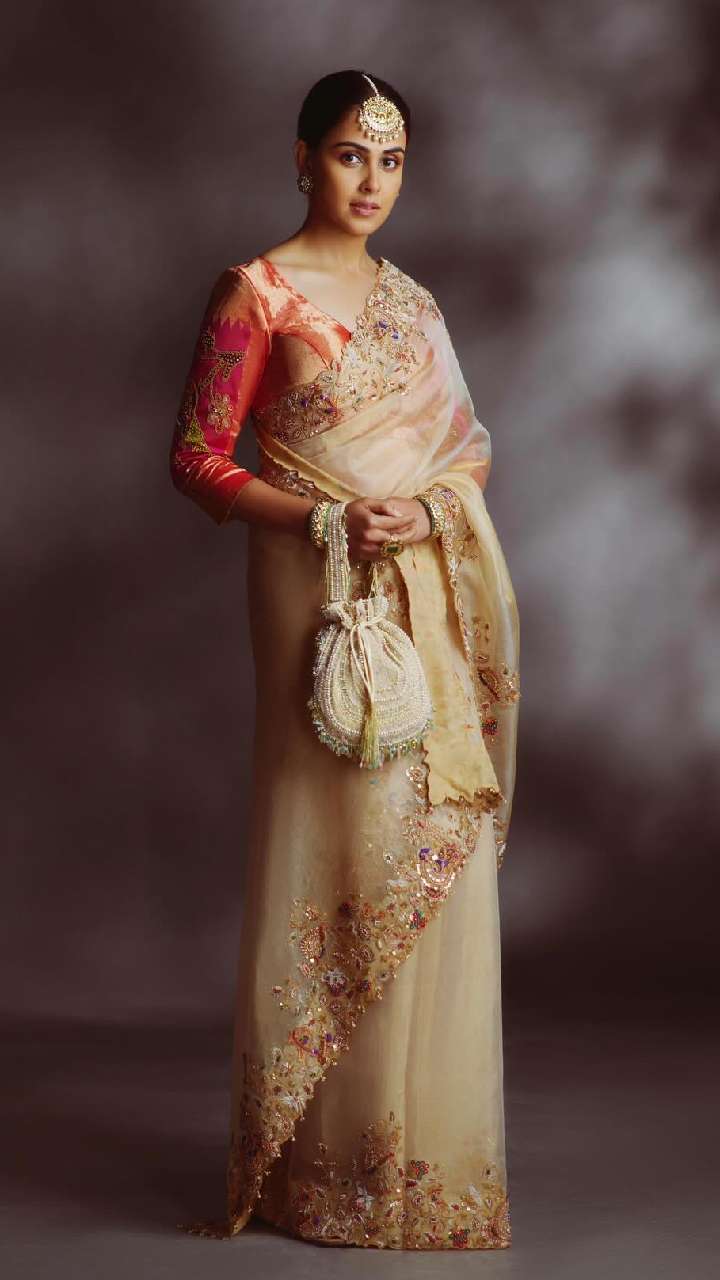 ससुराल के लिए लाइटवेट साड़ी की तलाश में हैं, तो ऐसी ऑर्गेंजा साड़ी से इंस्पिरेशन लें। यह आपको सुंदर और मॉडर्न लुक देगी।