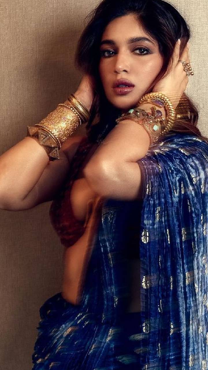 भूमि पेडनेकर ब्लू साड़ी में हद से ज्यादा बोल्ड लग रही हैं।