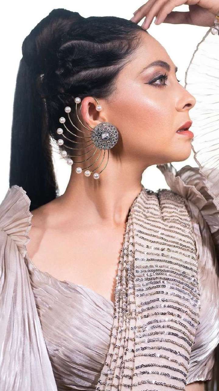 आप ड्रेस को मॉडर्न और पर्सनैलिटी को बॉसी लुक देने के लिए एक्ट्रेस के हाई पोनी हेयर स्टाइल को ट्राई कर सकती हैं। यह देखने में बेहद खूबसूरत लग रहा है।