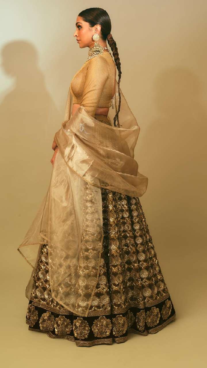 एक्ट्रेस ने लहंगे में रॉयल लुक के लिए ट्विस्टेड ब्रेड हेयर स्टाइल को कैरी किया है। साथ ही, लंबे बालों के लिए यह हेयर स्टाइल एकदम बेस्ट ऑप्शन हैं। यह लुक को खूबसूरत के साथ-साथ अट्रैक्टिव भी बनाएगा।