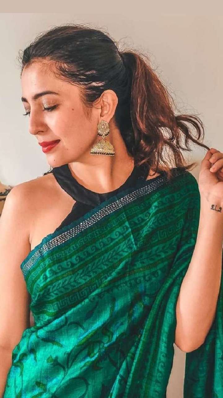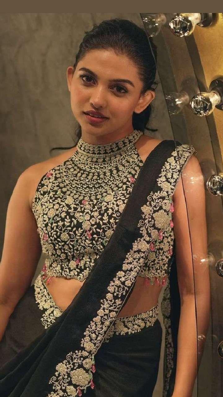 एक्ट्रेस इस डिजाइनर ब्लाउज में खूबसूरत लग रही है। आप साड़ी के साथ एक्ट्रेस के ब्लाउज को ट्राई कर सकती हैं। यह आपको पार्टी में गॉर्जियल लुक देगा।