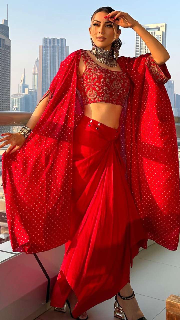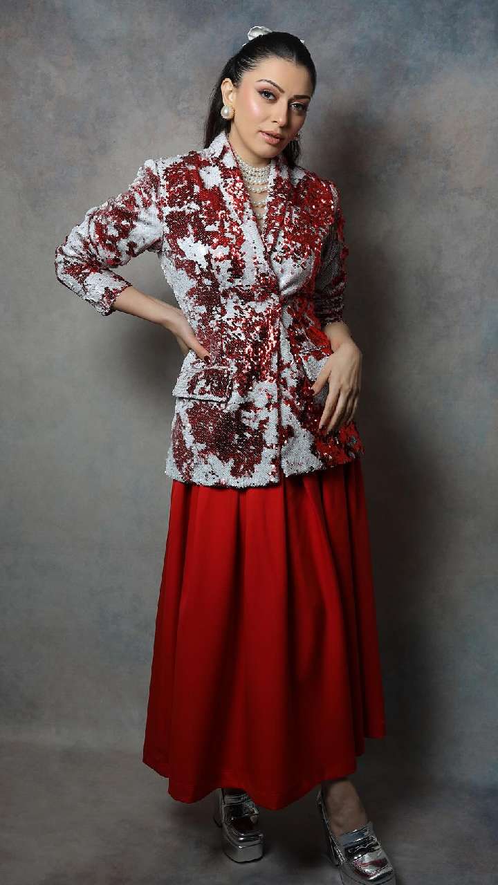 सोशल मीडिया पर हंसिका मोटवानी ने अपना लेटेस्ट इंडो वेस्टर्न लुक शेयर किया है। रेड कलर के स्कर्ट के साथ एक्ट्रेस ने ब्लेजर पेयर किया है।