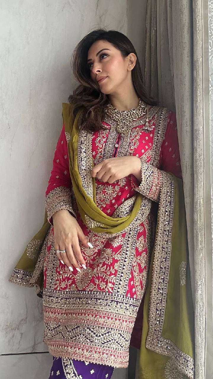 आप हंसिका मोटवानी के इस रेड सूट लुक को भी कैरी कर सकती हैं। रेड कलर के सूट में हंसिका बहुत सुंदर लग रहीं हैं।