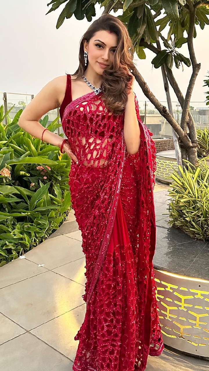 आप पार्टी लुक के लिए यूनिक साड़ी की तलाश में हैं, तो एक्ट्रेस की यह साड़ी बेस्ट है। उन्होंने रेड कलर की नेट शिमरी साड़ी में काफी स्टाइलिश दिखाई दे रही हैं।