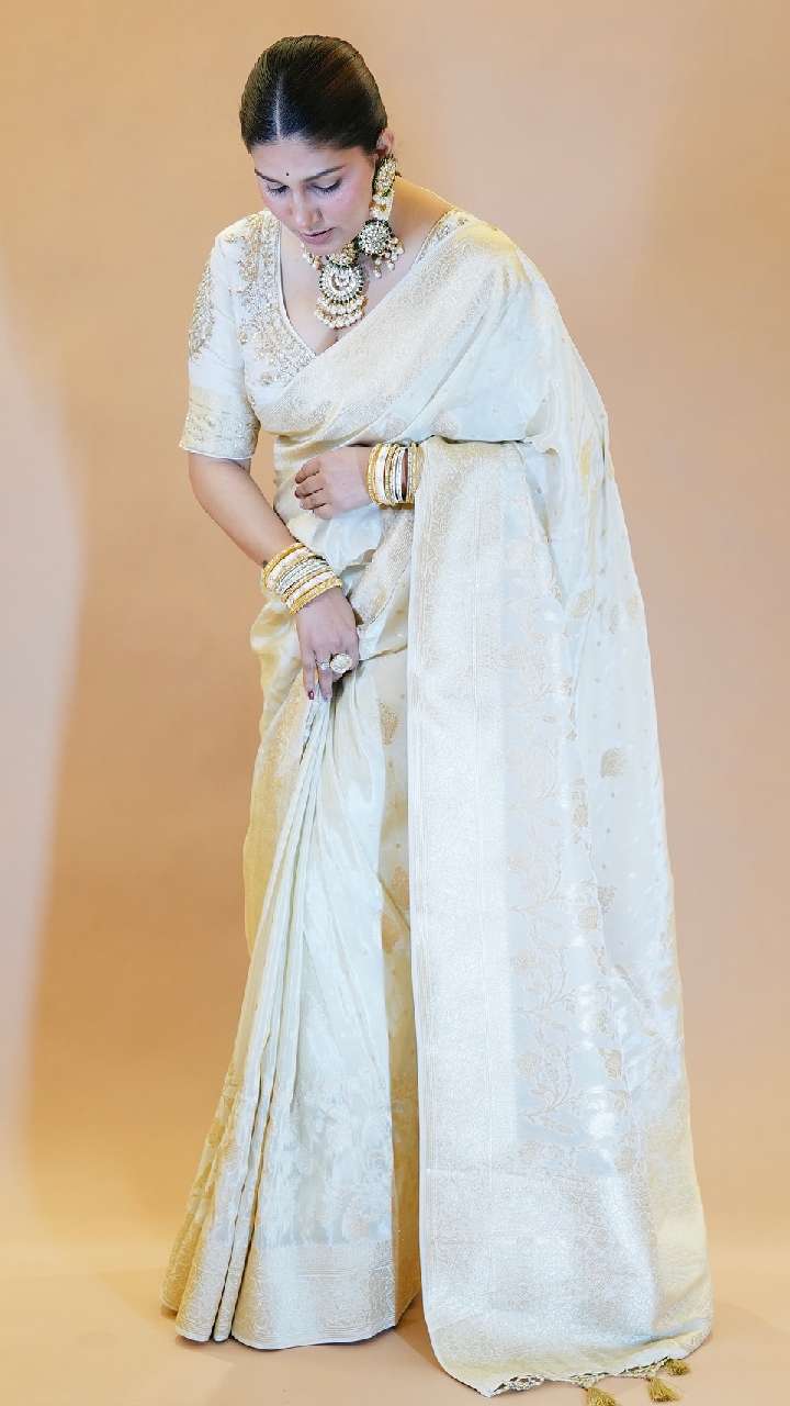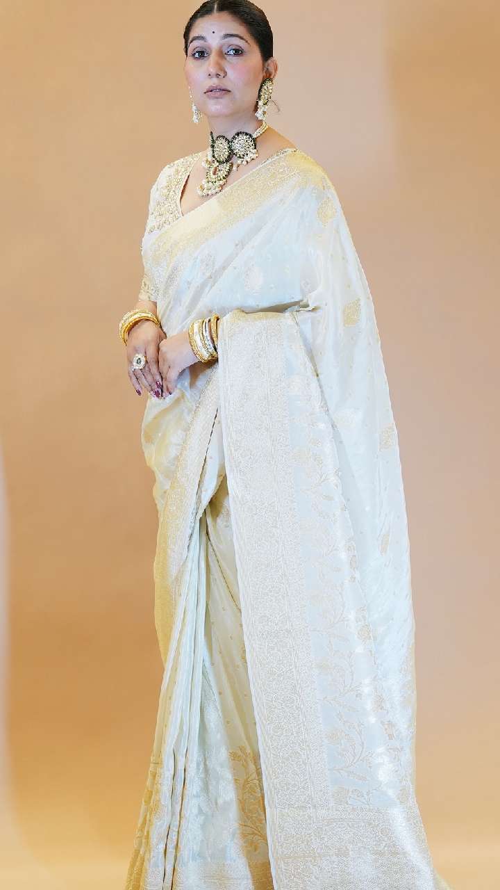 फिलहाल टिशू साड़ी काफी ज्यादा ट्रेंड में चल रही हैं। आप भी इस तरह की साड़ी को खास मौके पर स्टाइल करें।