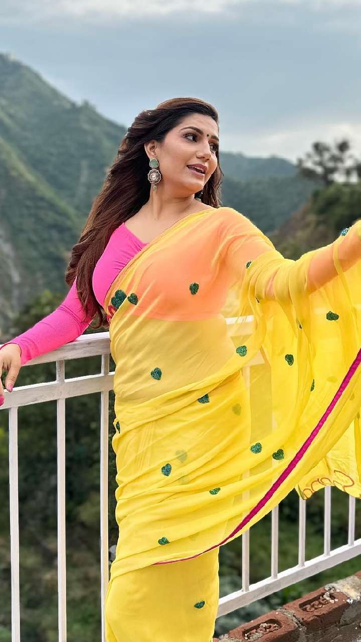 अगर आप अपने लुक को क्लासी बनाना चाहती हैं तो आप सपना चौधरी के इस लुक को कैरी करें। सिल्क साड़ी आपके लुक में चार चांद लगा देंगी।